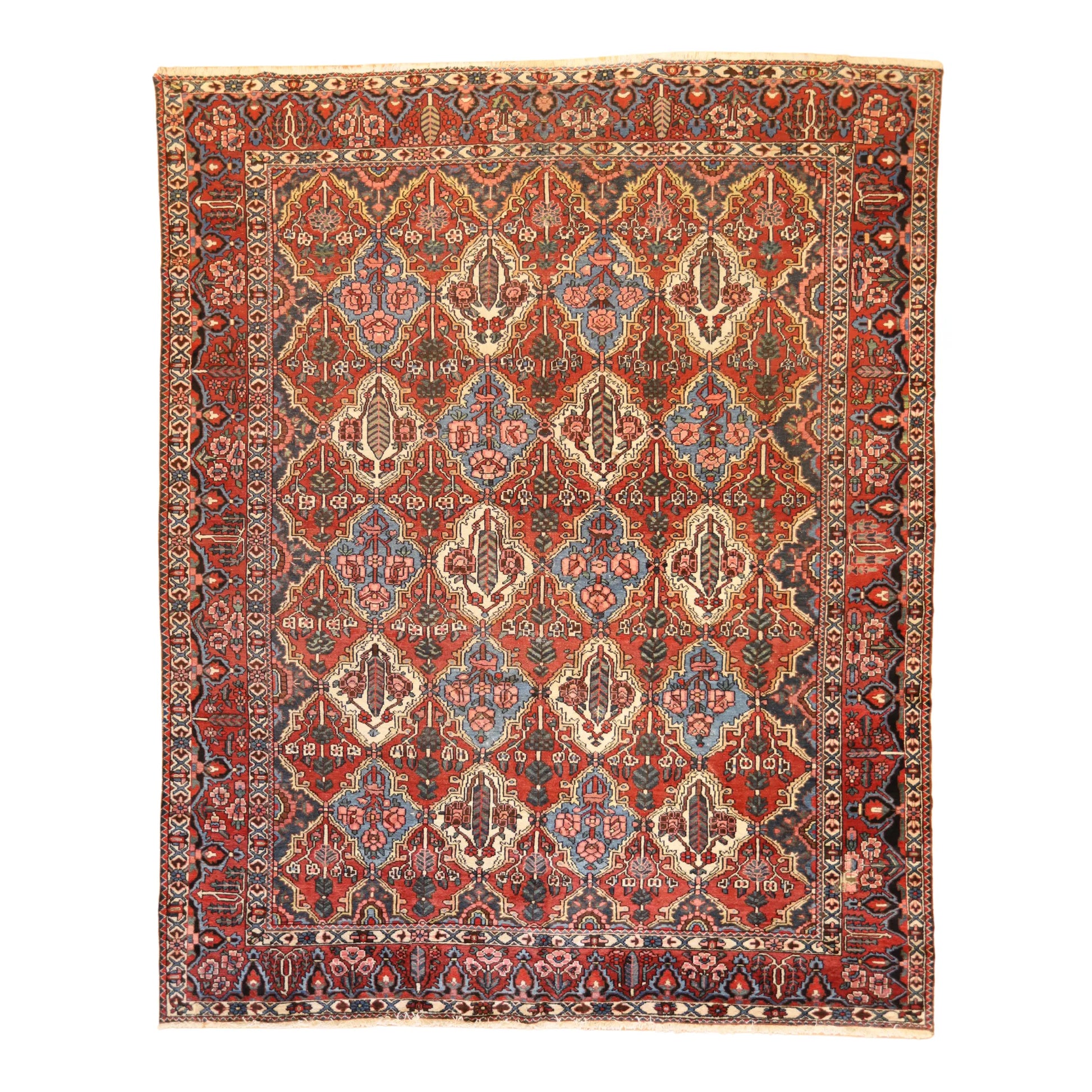 Add Timeless Elegance to Your Space with an Antique Rug. This exquisite BAKHTIARI antique rug, showcasing a rich heritage and intricate artistry, is a testament to timeless beauty. The striking RUST background, paired with its intricate RUST border, creates a captivating contrast that adds sophistication to any room. Perfect for your living room, dining area, or study, this rug blends style with history to enrich your decor. Handcrafted in PERSIA, this rug reflects the skilled craftsmanship and cultural legacy of its origin. With dimensions of 10'0" x 13'10" , its high-quality construction ensures lasting beauty for generations to come.