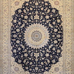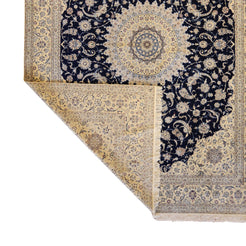 Woven from high-quality SILK&WOOL, this rug delivers lasting durability and a luxurious feel underfoot. The deep NAVY base color is beautifully complemented by a IVORY border, creating a striking visual balance.