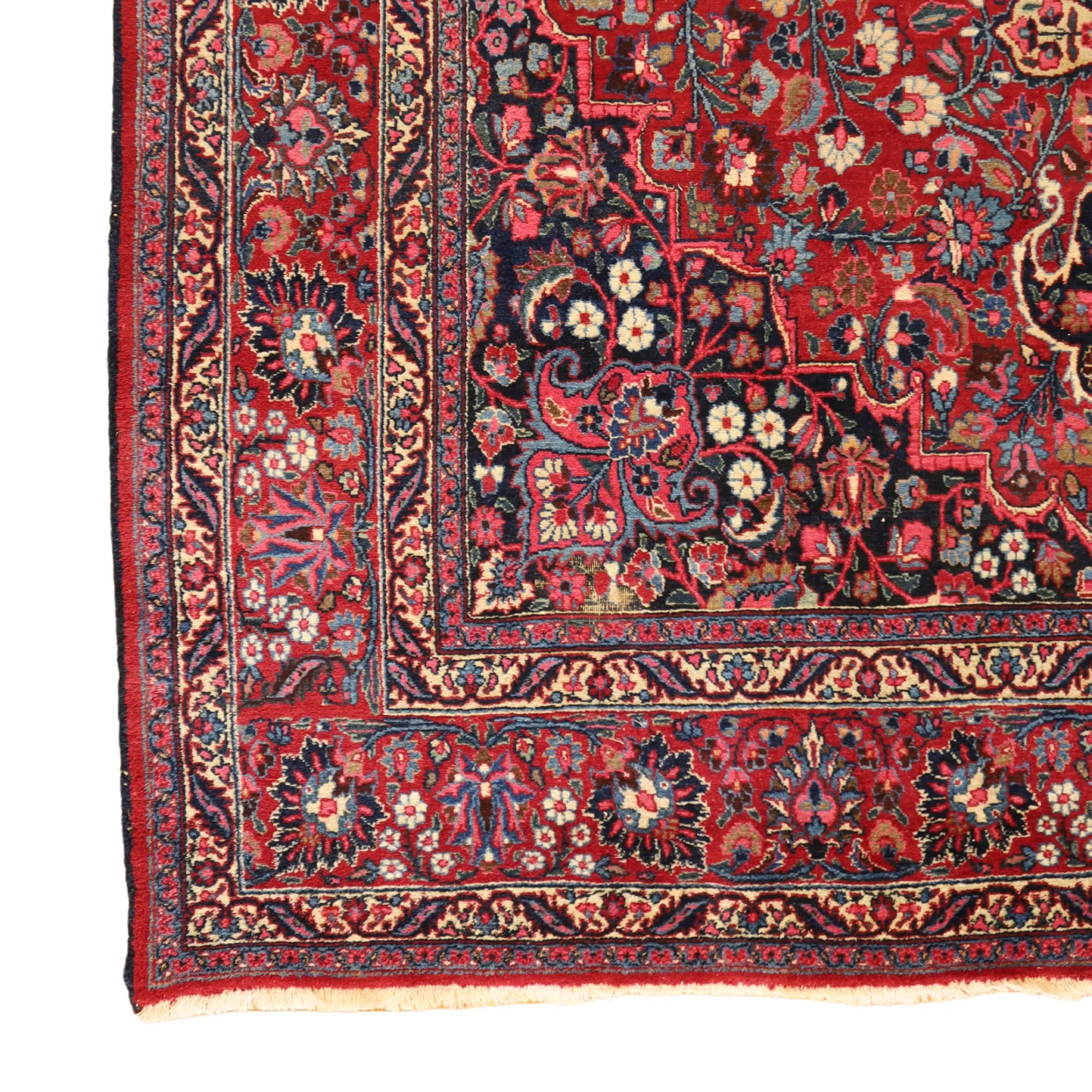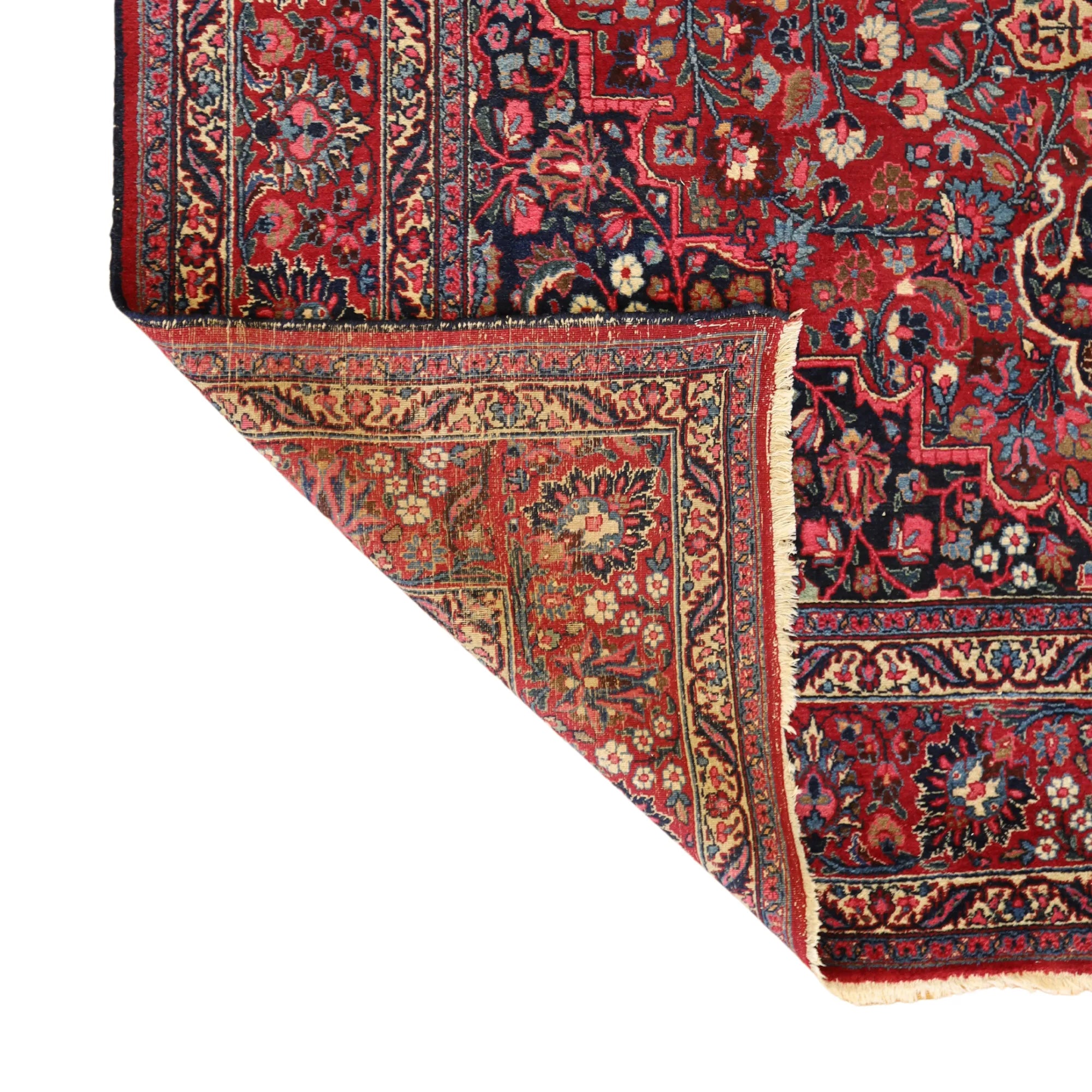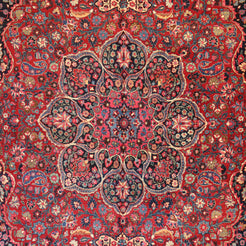 Add Timeless Elegance to Your Space with an Antique Rug. This exquisite MASHAD antique rug, showcasing a rich heritage and intricate artistry, is a testament to timeless beauty. The striking RED background, paired with its intricate RED border, creates a captivating contrast that adds sophistication to any room. Perfect for your living room, dining area, or study, this rug blends style with history to enrich your decor. Handcrafted in PERSIA, this rug reflects the skilled craftsmanship and cultural legacy of its origin. With dimensions of 10'8" x 15'8" , its high-quality construction ensures lasting beauty for generations to come.