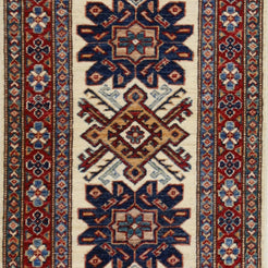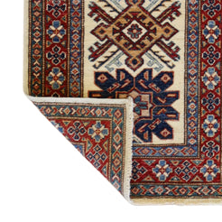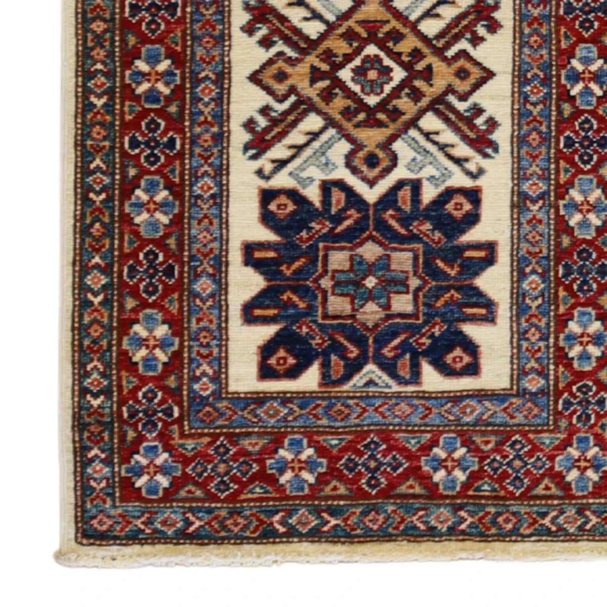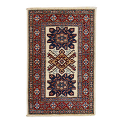Compact in size but rich in detail, this handcrafted PAKISTANI KAZAK rug is designed in a stylish GEOMETRIC look. Measuring approximately 1' x 1 ft, it's perfect for small spaces like entryways, kitchens, bathrooms, or beside the bed.