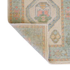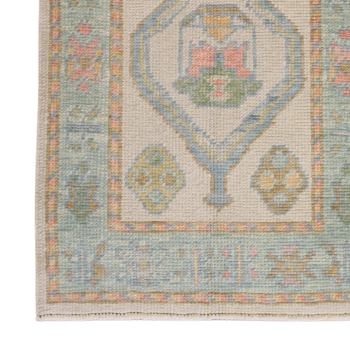 Compact in size but rich in detail, this handcrafted TURKISH OUSHAK rug is designed in a stylish GEOMETRIC look. Measuring approximately 2' x 2 ft, it's perfect for small spaces like entryways, kitchens, bathrooms, or beside the bed.