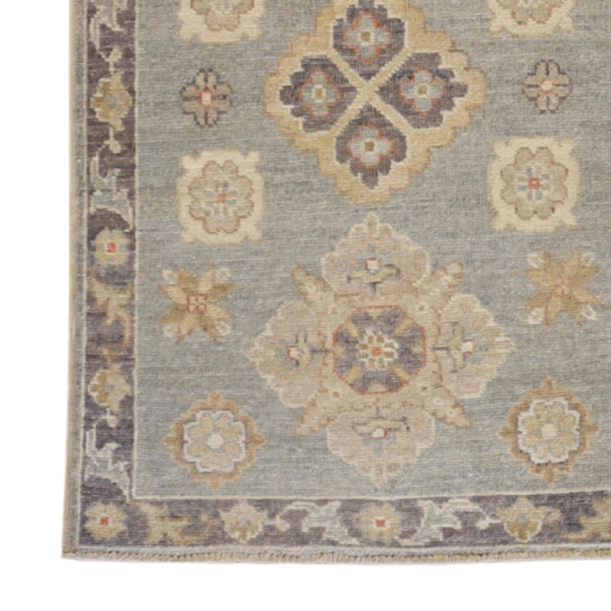 Woven from quality WOOL, this rug offers both durability and softness. The BLUE base color is accented with a subtle GRAY border, creating a refined yet eye-catching piece.