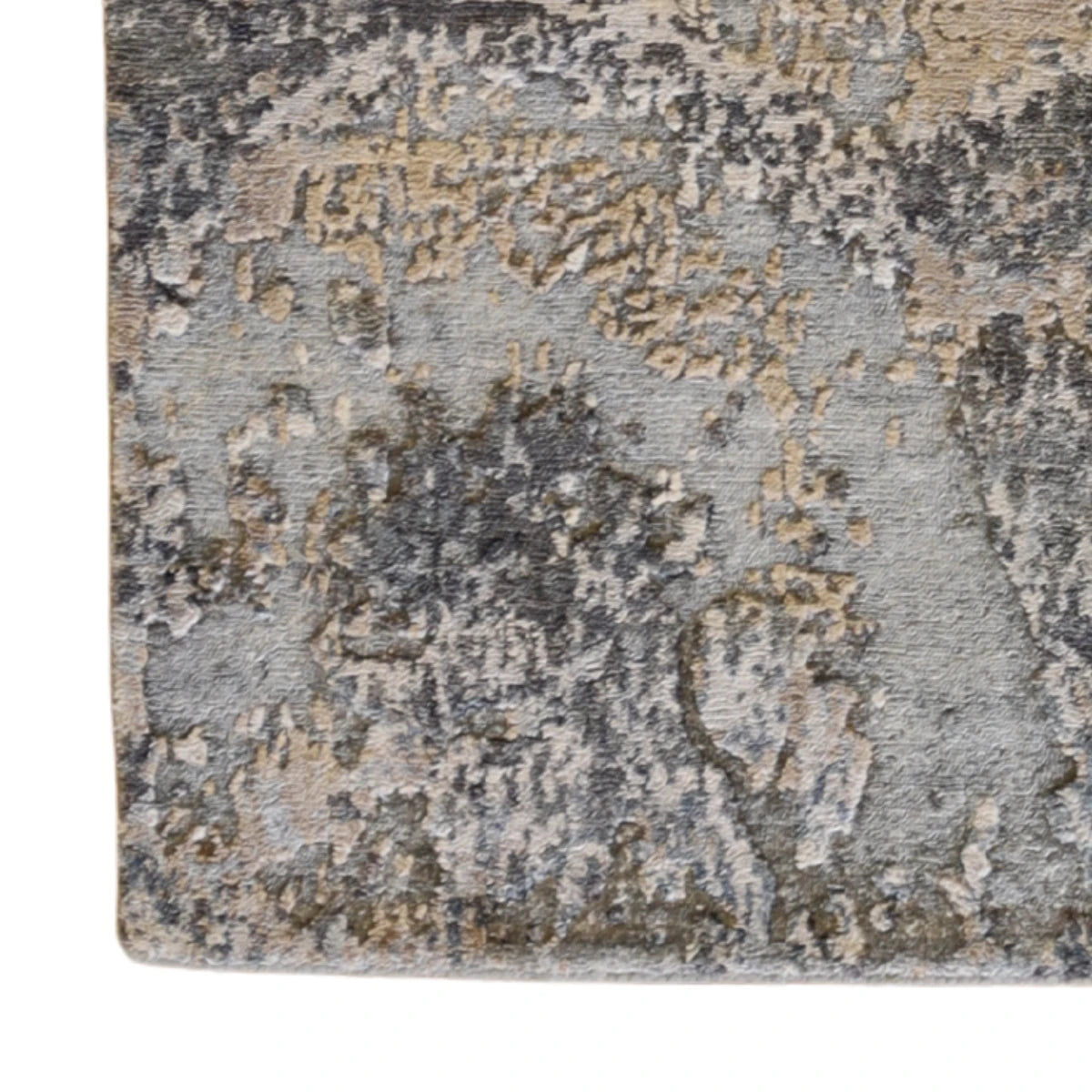 Woven from quality WOOL, this rug offers both durability and softness. The GRAY base color is accented with a subtle BLUE border, creating a refined yet eye-catching piece.