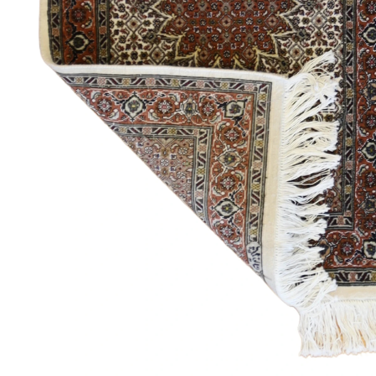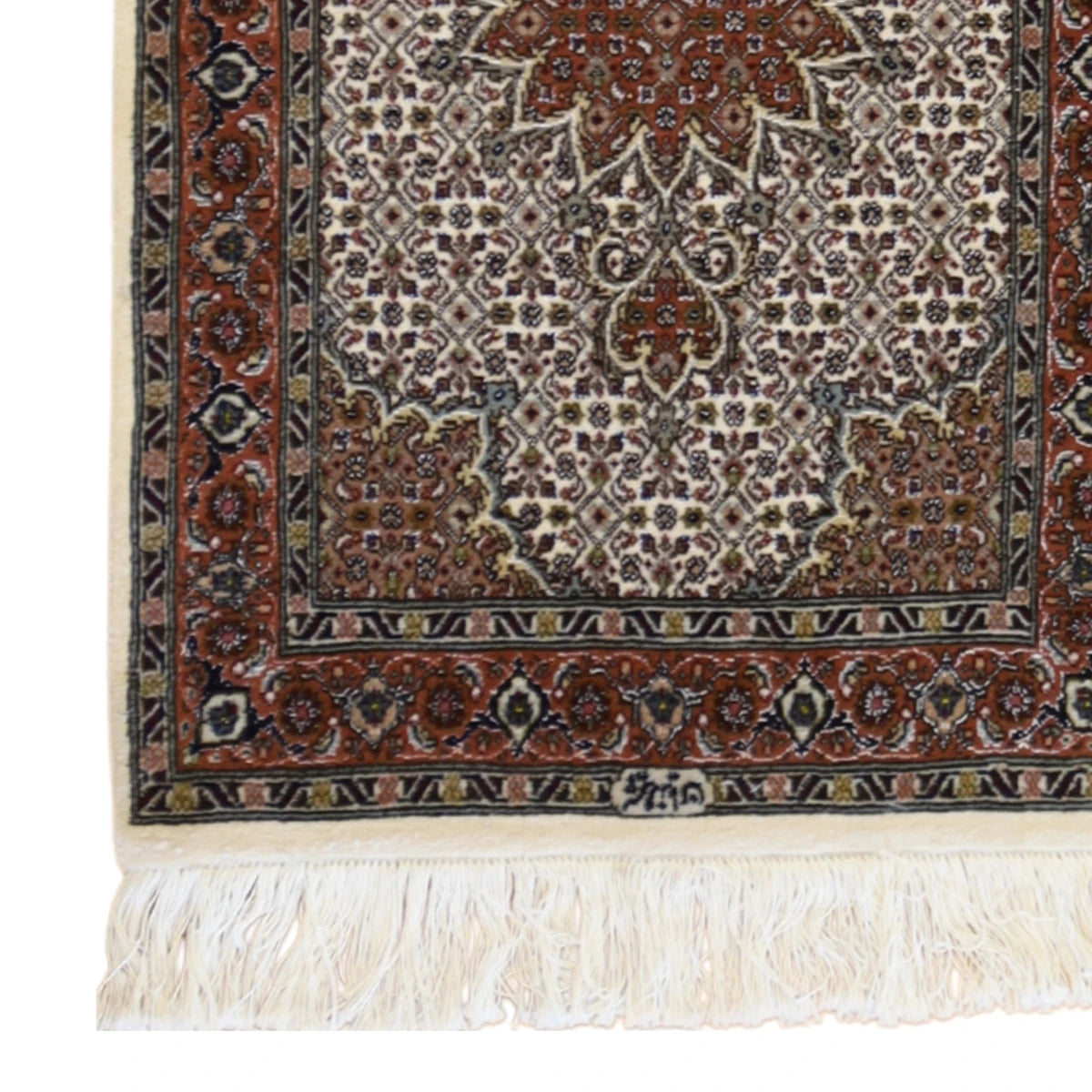 Woven from quality SILK&WOOL, this rug offers both durability and softness. The IVORY base color is accented with a subtle RUST border, creating a refined yet eye-catching piece.