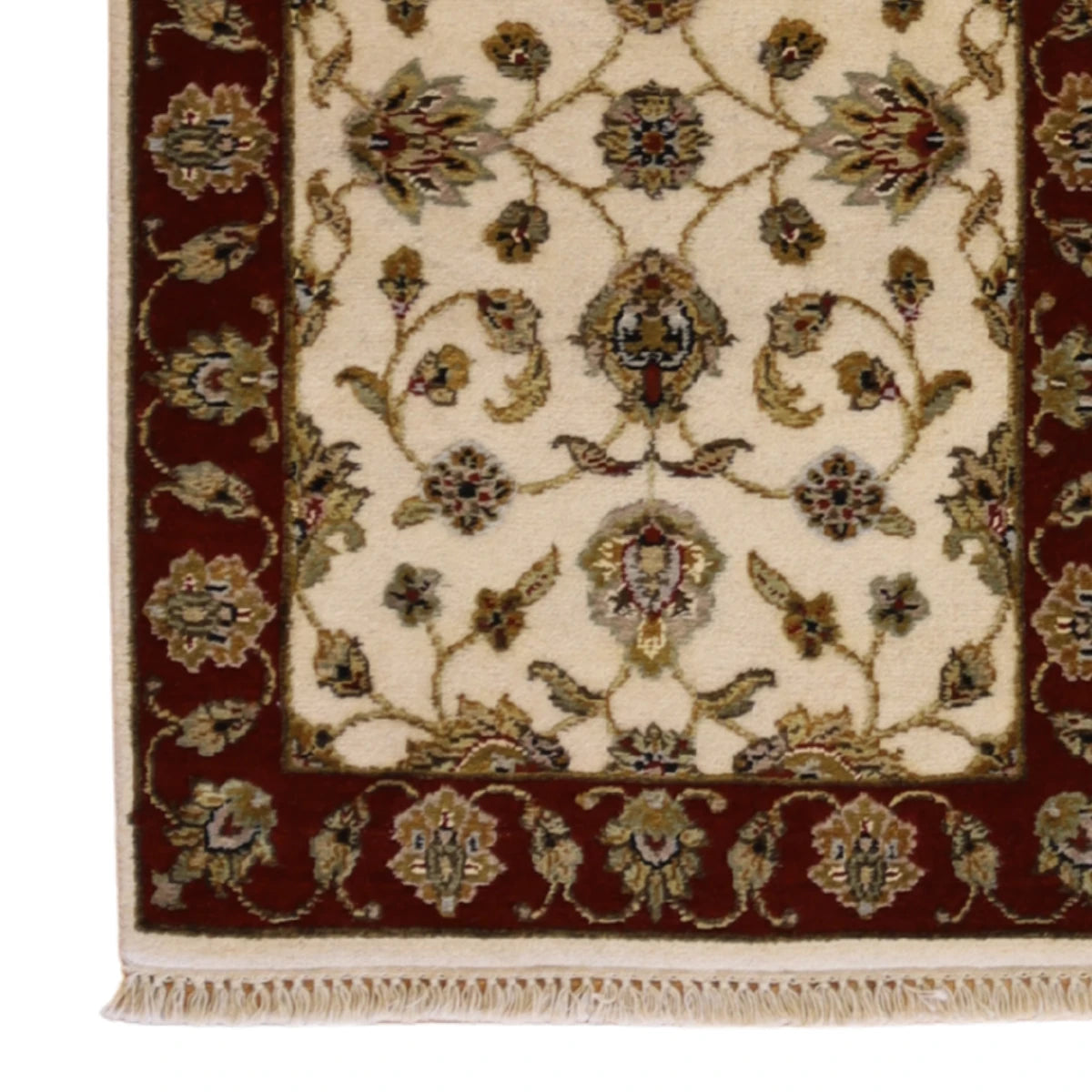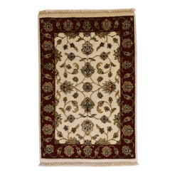 Compact in size but rich in detail, this handcrafted INDIAN JAIPUR rug is designed in a stylish FLORAL look. Measuring approximately 2' x 2 ft, it's perfect for small spaces like entryways, kitchens, bathrooms, or beside the bed.