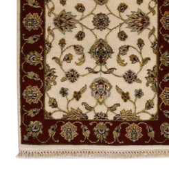 Woven from quality SILK&WOOL, this rug offers both durability and softness. The IVORY base color is accented with a subtle RED border, creating a refined yet eye-catching piece.