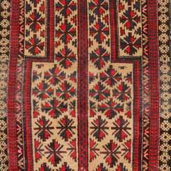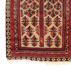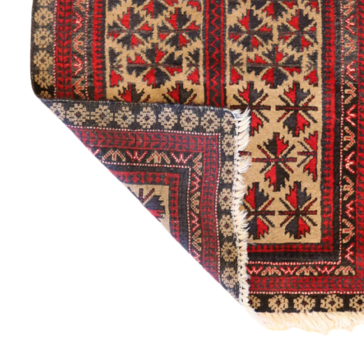 Add a touch of character and history to your home with this handcrafted vintage AFGHANI BALUCH rug in a timeless GEOMETRIC style. Measuring approximately 2' x 4' ft, its versatile size fits beautifully in entryways, next to the bed, under a coffee table, or in cozy reading corners.