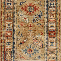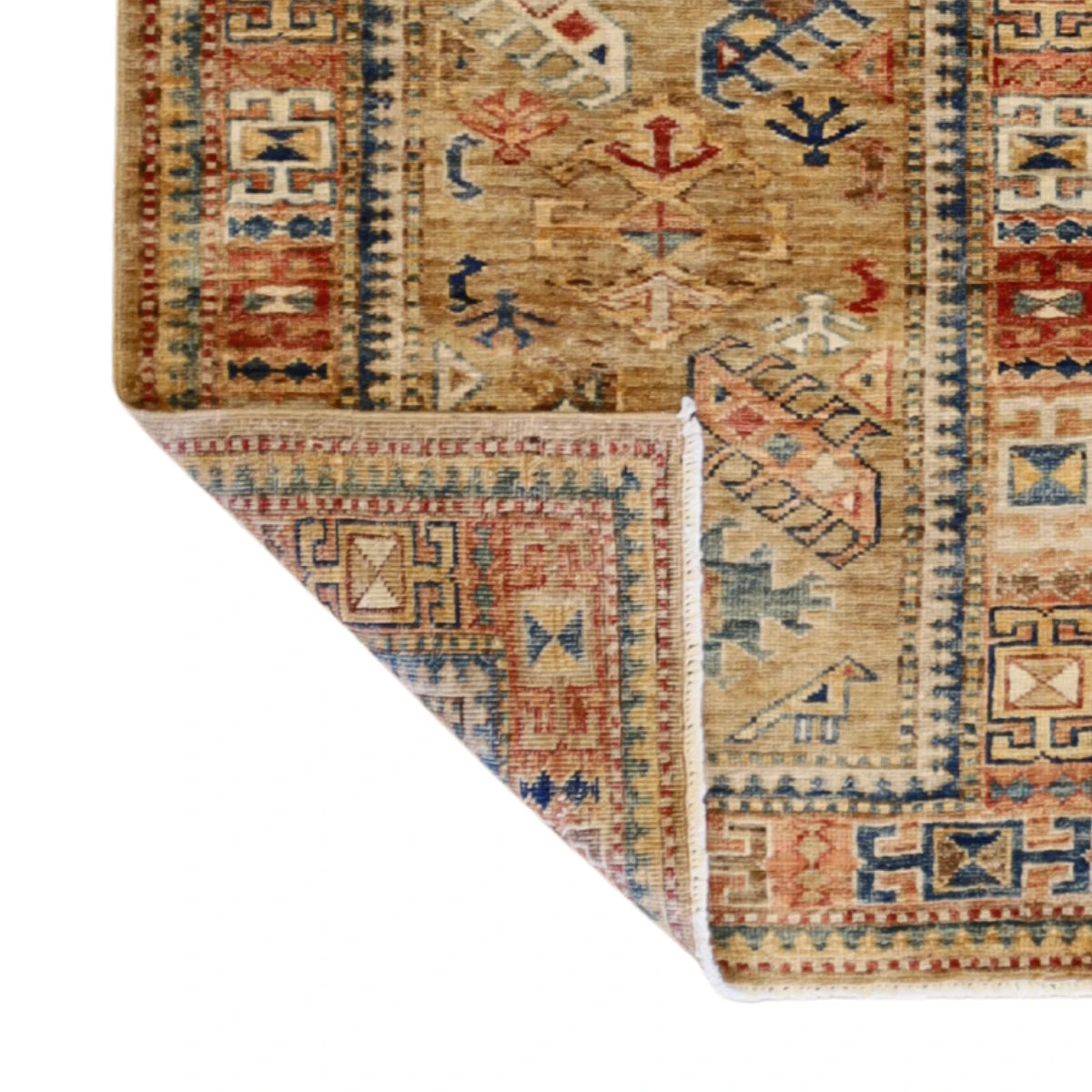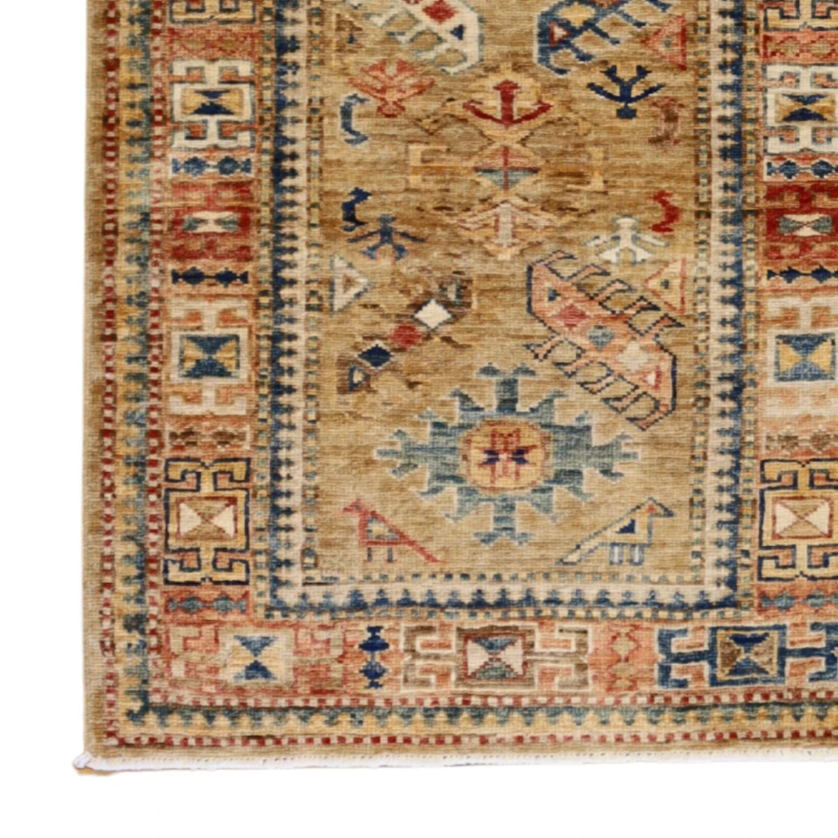 Compact in size but rich in detail, this handcrafted AFGHANI KAZAK rug is designed in a stylish GEOMETRIC look. Measuring approximately 2' x 2 ft, it's perfect for small spaces like entryways, kitchens, bathrooms, or beside the bed.