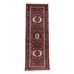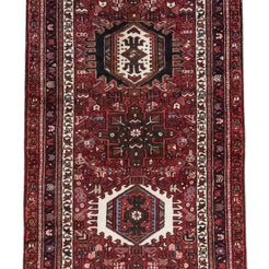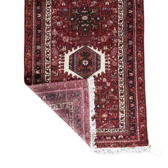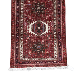 Add a Bold Touch with GEOMETRIC Style. This stunning KARAJEH rug, crafted in a striking geometric style, brings a modern and bold look to your home. The clean, sharp lines and symmetrical patterns on the RED base create a dynamic visual effect, making this rug a perfect statement piece. The contrasting RED border adds a touch of sophistication, enhancing the overall design. Whether placed in your living room, office, or any open space, the geometric pattern brings structure and energy to the decor. Sourced from PERSIAN, this handmade rug is a long-lasting investment in craftsmanship and style. Measuring 3' 5" x 9' 2" (imperial) or 104 x 279 (metric), it not only elevates your space but is built to stand the test of time.