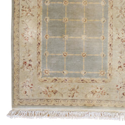 Made from premium WOOL, this rug offers both durability and a soft, luxurious feel underfoot. The rich BLUE background is beautifully contrasted with a IVORY border, adding depth and sophistication to your d��cor.