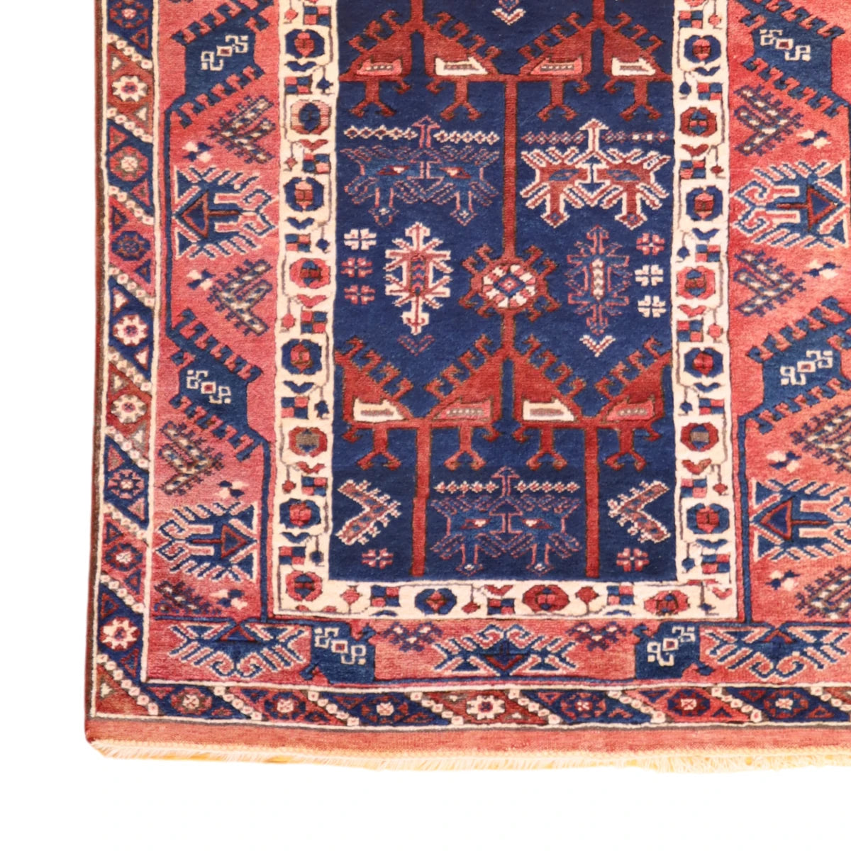 Made from premium WOOL, this rug combines long-lasting durability with a soft, inviting texture. The rich NAVY base color, framed by a refined RED border, brings depth and warmth to any space.