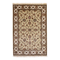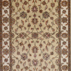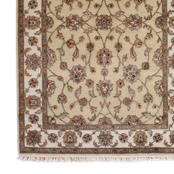 Made from premium SILK & WOOL, this rug offers both durability and a soft, luxurious feel underfoot. The rich GOLD background is beautifully contrasted with a IVORY border, adding depth and sophistication to your d��cor.