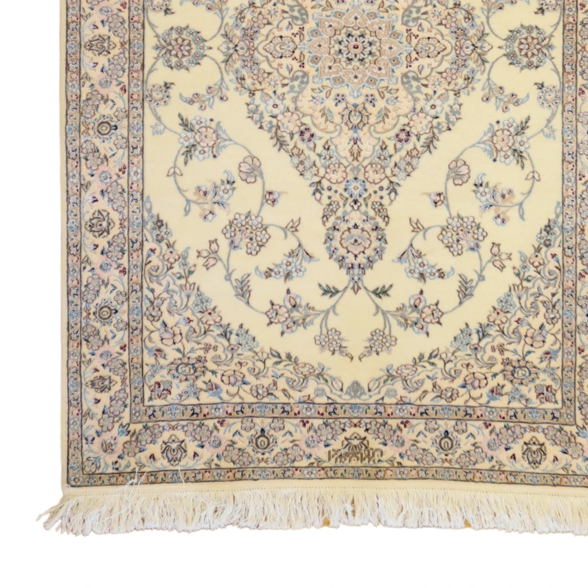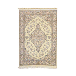 Elevate your home with the refined beauty of this handcrafted FINE PERSIAN NAEIN rug, designed in a timeless FLORAL style. Measuring approximately 3 x 4 ft, it's ideal for adding elegance to your living space.