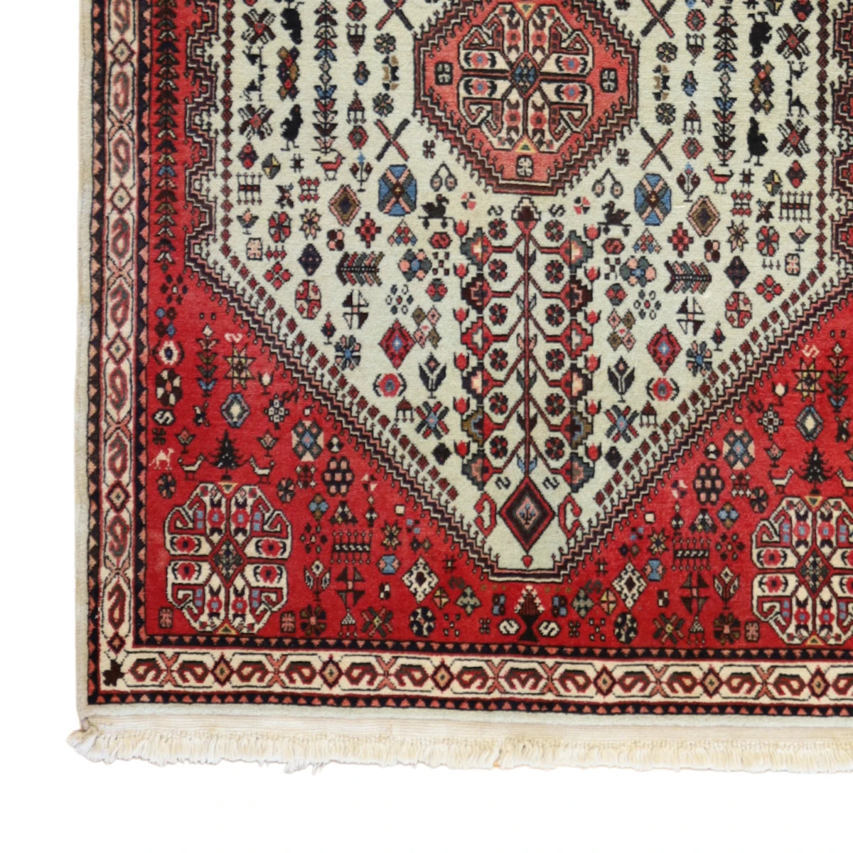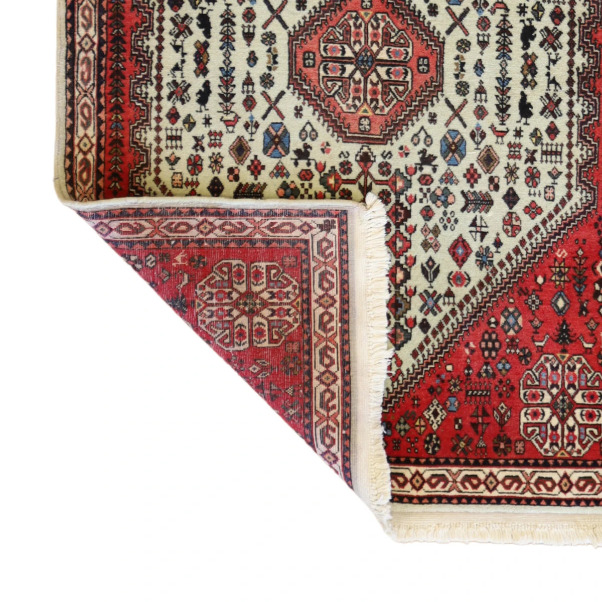 Made from premium WOOL, this rug combines long-lasting durability with a soft, inviting texture. The rich WHITE base color, framed by a refined RED border, brings depth and warmth to any space.