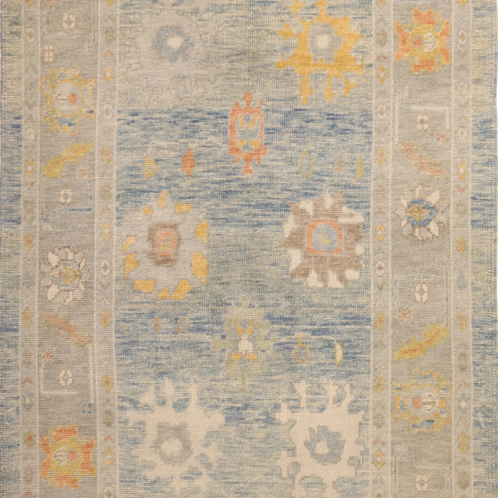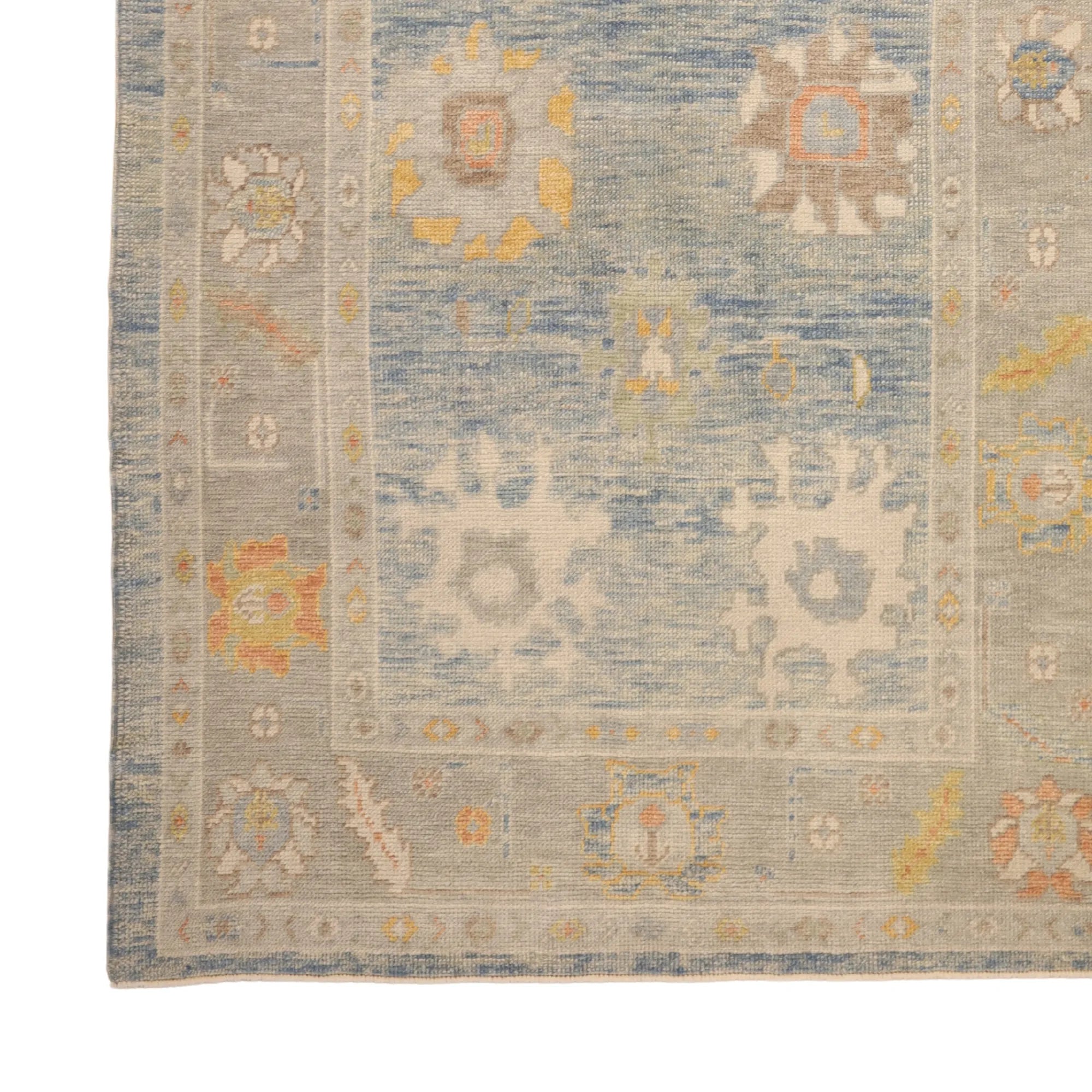 Add a Bold Touch with GEOMETRIC Style. This stunning OUSHAK rug, crafted in a striking geometric style, brings a modern and bold look to your home. The clean, sharp lines and symmetrical patterns on the BLUE base create a dynamic visual effect, making this rug a perfect statement piece. The contrasting GRAY border adds a touch of sophistication, enhancing the overall design. Whether placed in your living room, office, or any open space, the geometric pattern brings structure and energy to the decor. This handmade TURKISH, rug is a long-lasting investment in craftsmanship and style. Measuring 4' 10" x 7' 5", it not only elevates your space but is built to stand the test of time.