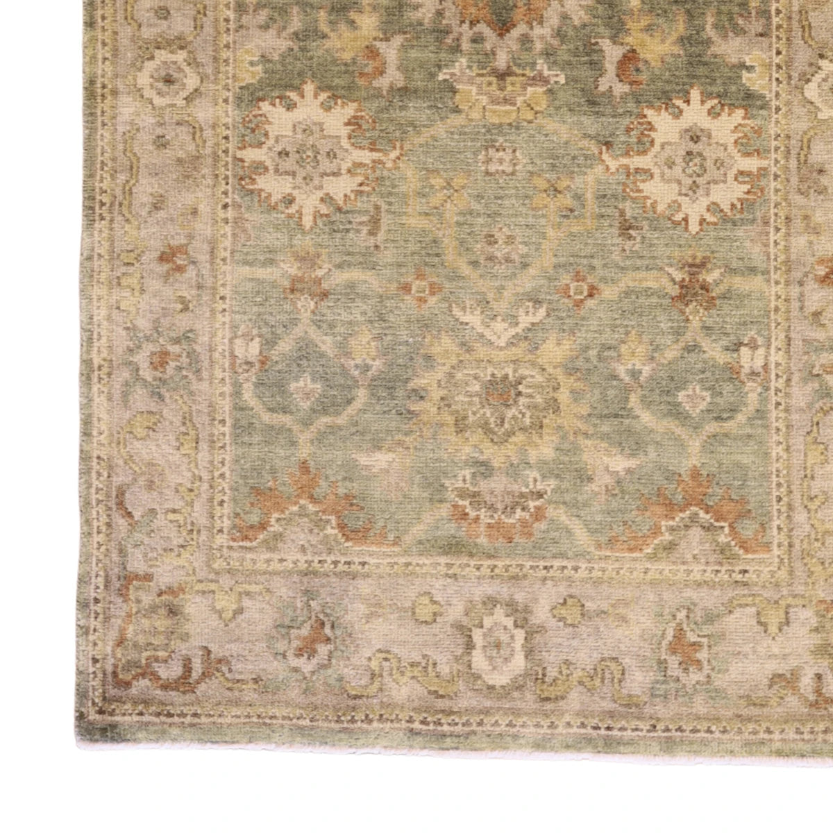 Made from premium WOOL, this rug offers both durability and a soft, luxurious feel underfoot. The rich GREEN background is beautifully contrasted with a TAUPE border, adding depth and sophistication to your d��cor.