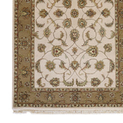 Made from premium SILK & WOOL, this rug offers both durability and a soft, luxurious feel underfoot. The rich IVORY background is beautifully contrasted with a GOLD border, adding depth and sophistication to your d��cor.