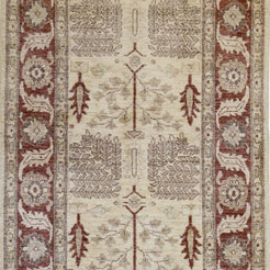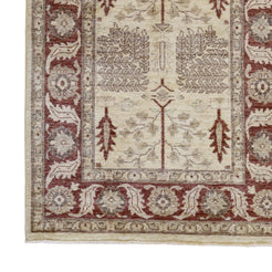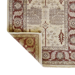 Made from premium WOOL, this rug offers both durability and a soft, luxurious feel underfoot. The rich BEIGE background is beautifully contrasted with a RED border, adding depth and sophistication to your d��cor.