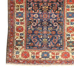 Made from premium WOOL, this rug combines long-lasting durability with a soft, inviting texture. The rich NAVY base color, framed by a refined IVORY border, brings depth and warmth to any space.