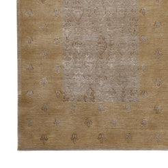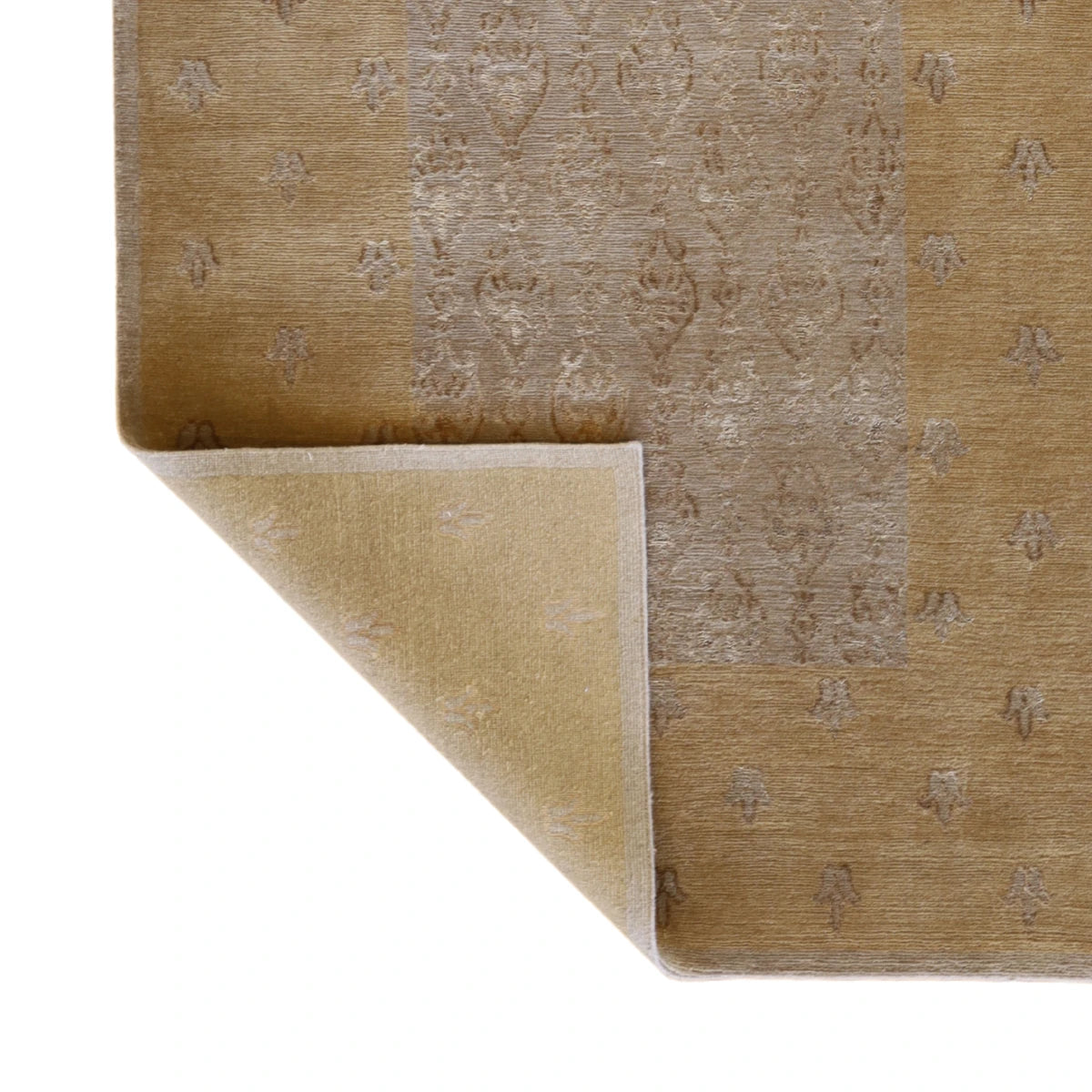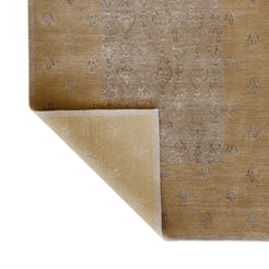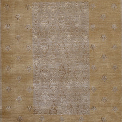 Made from premium SILK & WOOL, this rug offers both durability and a soft, luxurious feel underfoot. The rich TAUPE background is beautifully contrasted with a GOLD border, adding depth and sophistication to your d��cor.
