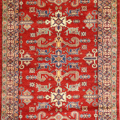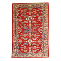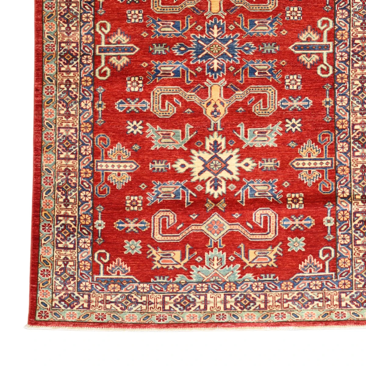 Bring timeless charm and warmth to any space with this handcrafted PAKISTANI KAZAK rug in a GEOMETRIC style. Measuring approximately 4 x 6 ft, it���s the perfect size for entryways, small living rooms, bedrooms, or under a coffee table.