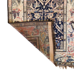 Made from premium WOOL, this rug combines long-lasting durability with a soft, inviting texture. The rich NAVY base color, framed by a refined IVORY border, brings depth and warmth to any space.