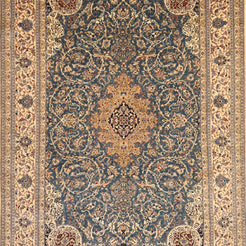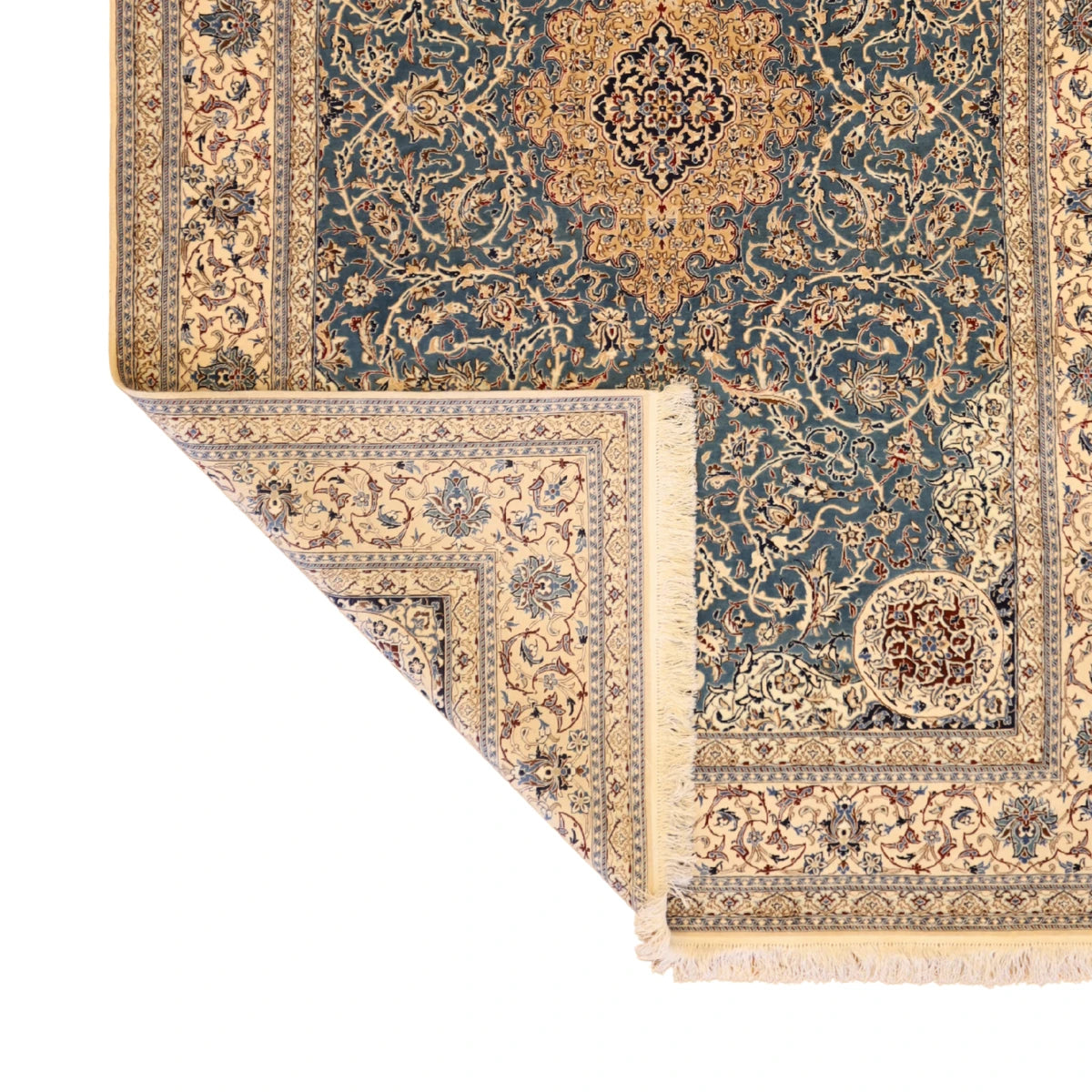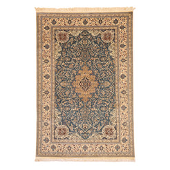 Woven from high-quality SILK&WOOL, this rug delivers lasting durability and a luxurious feel underfoot. The deep BLUE base color is beautifully complemented by a IVORY border, creating a striking visual balance.
