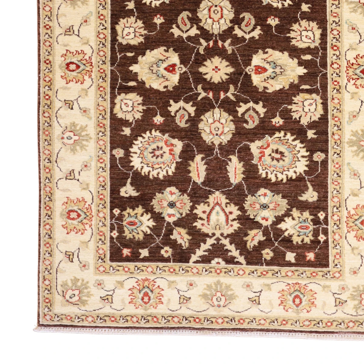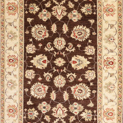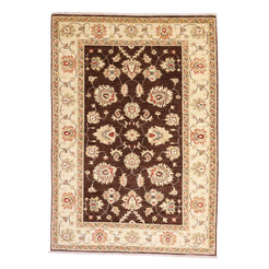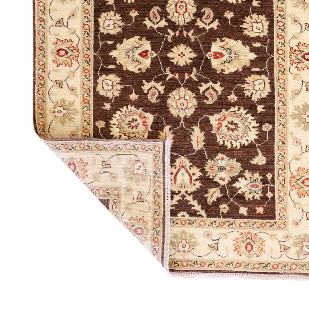 Made from premium WOOL, this rug offers both durability and a soft, luxurious feel underfoot. The rich BROWN background is beautifully contrasted with a BEIGE border, adding depth and sophistication to your d��cor.