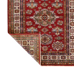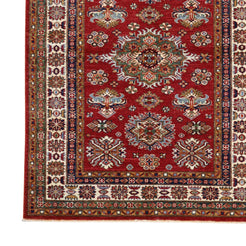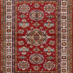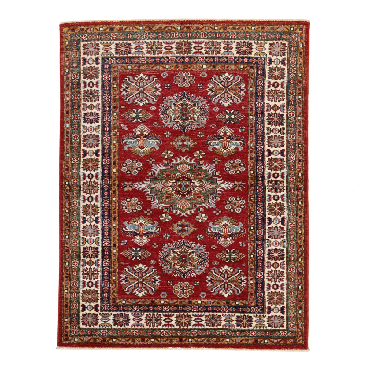 Bring timeless charm and warmth to any space with this handcrafted PAKISTANI KAZAK rug in a GEOMETRIC style. Measuring approximately 4 x 5 ft, it���s the perfect size for entryways, small living rooms, bedrooms, or under a coffee table.