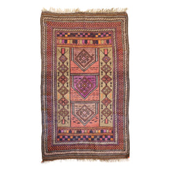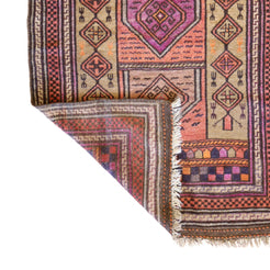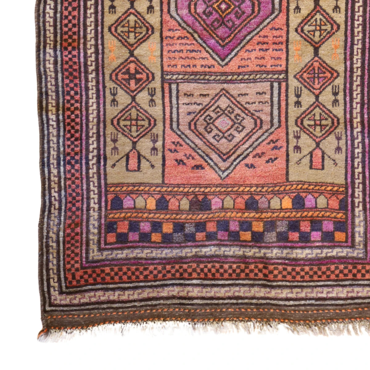 Add a touch of character and history to your home with this handcrafted vintage PERSIAN GABEH rug in a timeless GEOMETRIC style. Measuring approximately 4' x 7' ft, its versatile size fits beautifully in entryways, next to the bed, under a coffee table, or in cozy reading corners.