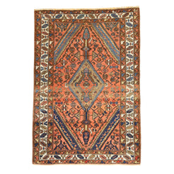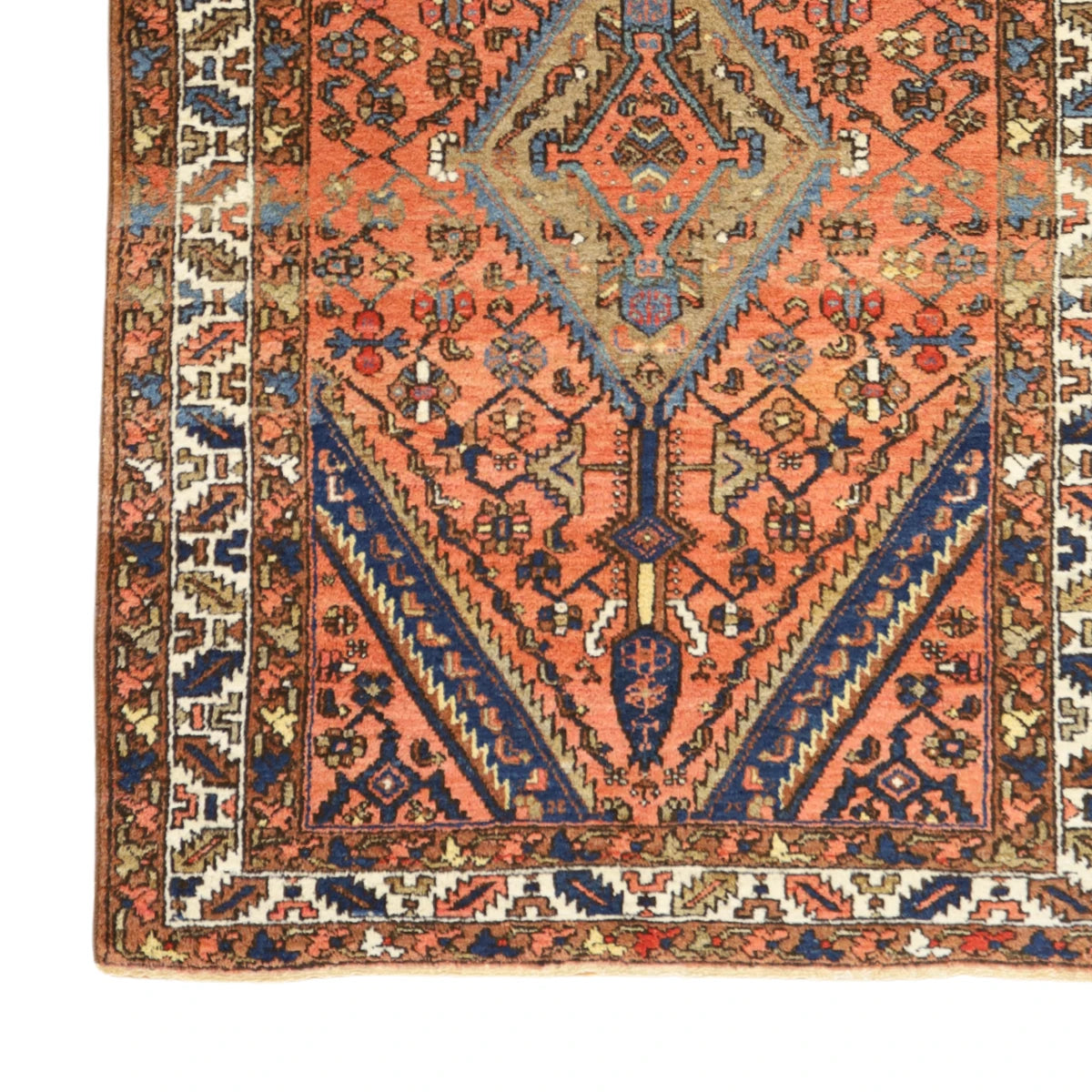 Add a touch of character and history to your home with this handcrafted vintage PERSIAN HAMEDAN rug in a timeless ANTIQUE style. Measuring approximately 4' x 6' ft, its versatile size fits beautifully in entryways, next to the bed, under a coffee table, or in cozy reading corners.