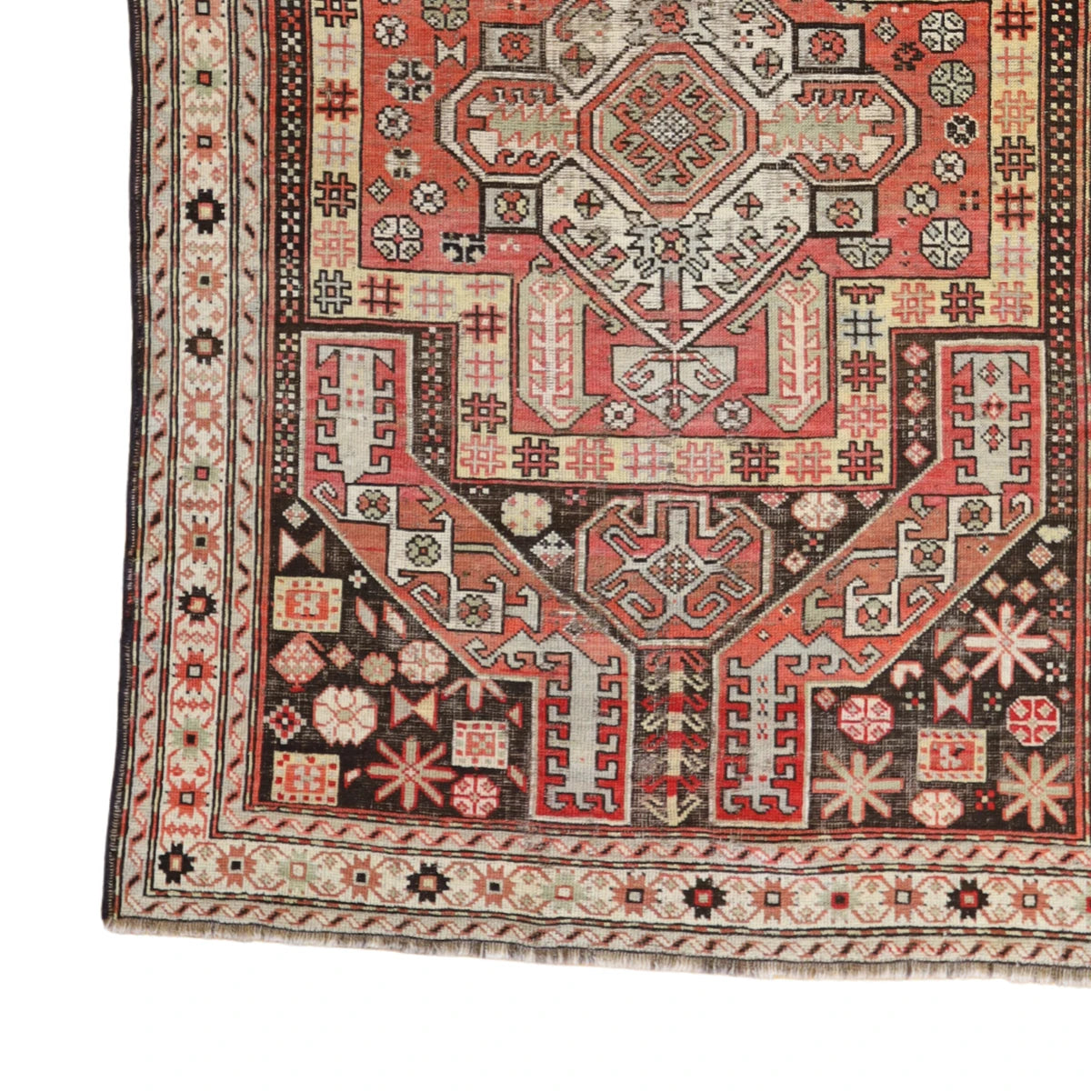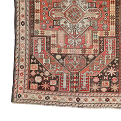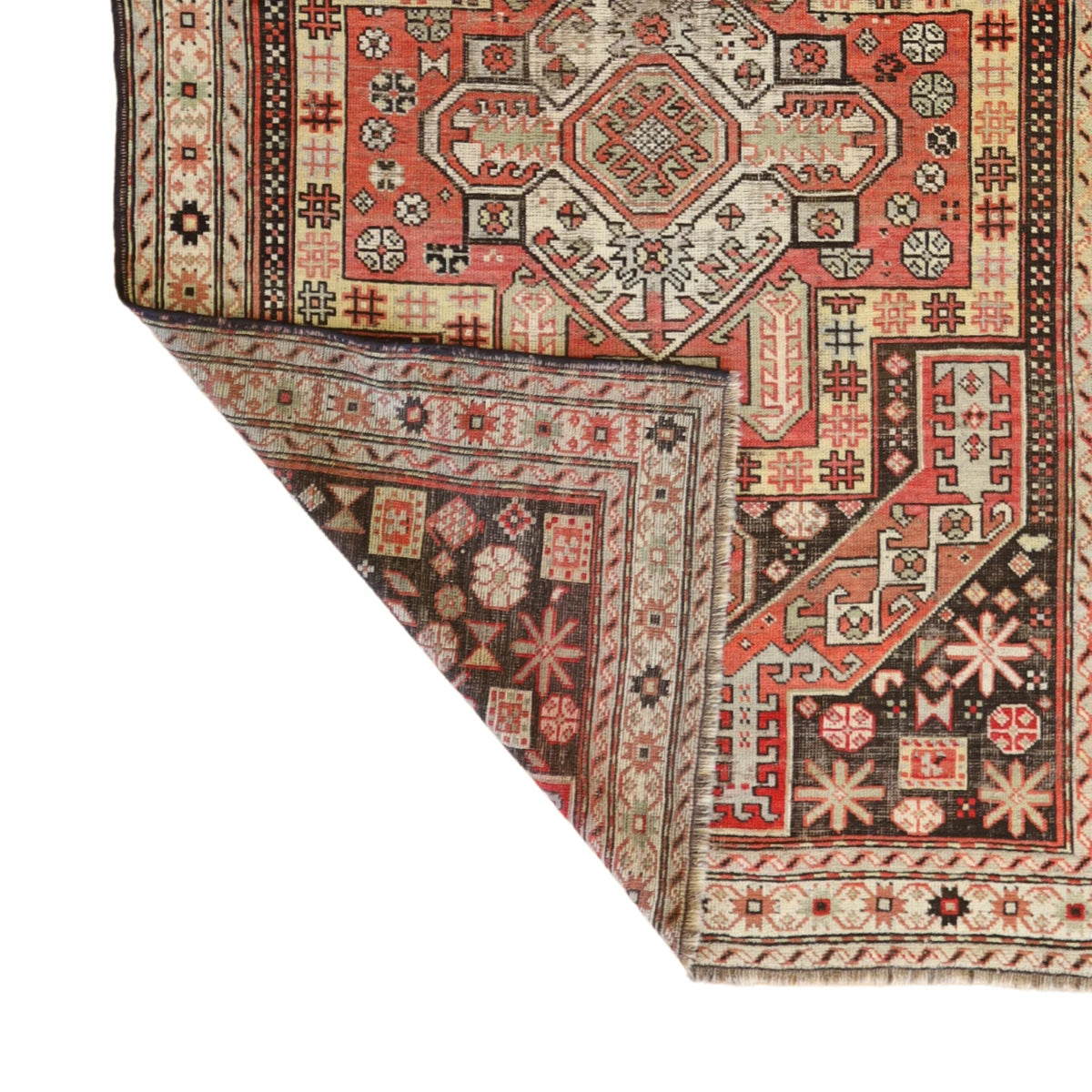 Add a touch of character and history to your home with this handcrafted vintage CAUCASIAN KARABAGH rug in a timeless ANTIQUE style. Measuring approximately 4' x 6' ft, its versatile size fits beautifully in entryways, next to the bed, under a coffee table, or in cozy reading corners.