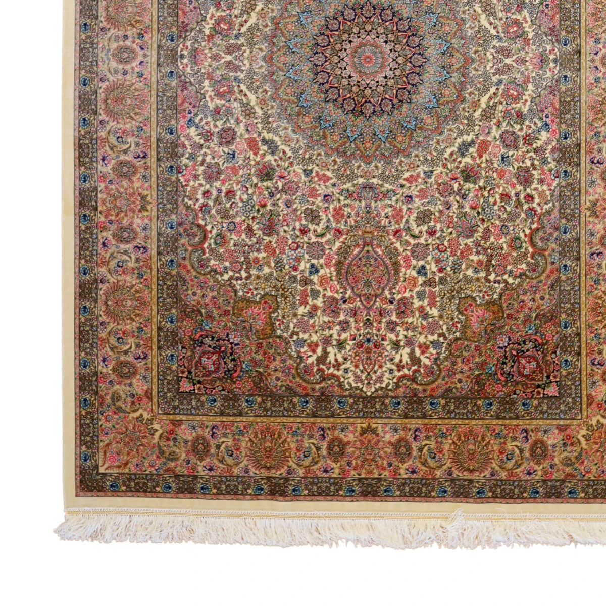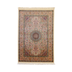 Elevate your home with the refined beauty of this handcrafted FINE PERSIAN QUM rug, designed in a timeless FLORAL style. Measuring approximately 4 x 6 ft, it's ideal for adding elegance to your living space.