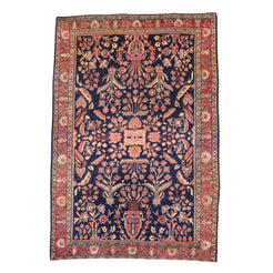 Made from premium WOOL, this rug combines long-lasting durability with a soft, inviting texture. The rich NAVY base color, framed by a refined RED border, brings depth and warmth to any space.