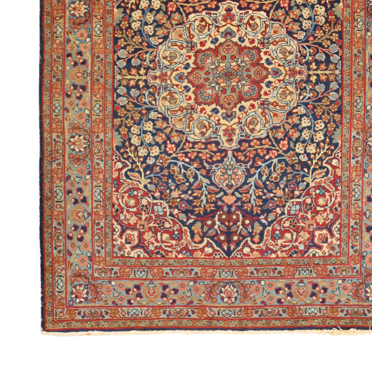 Add a touch of character and history to your home with this handcrafted vintage PERSIAN TABRIZ rug in a timeless ANTIQUE style. Measuring approximately 4' x 6' ft, its versatile size fits beautifully in entryways, next to the bed, under a coffee table, or in cozy reading corners.