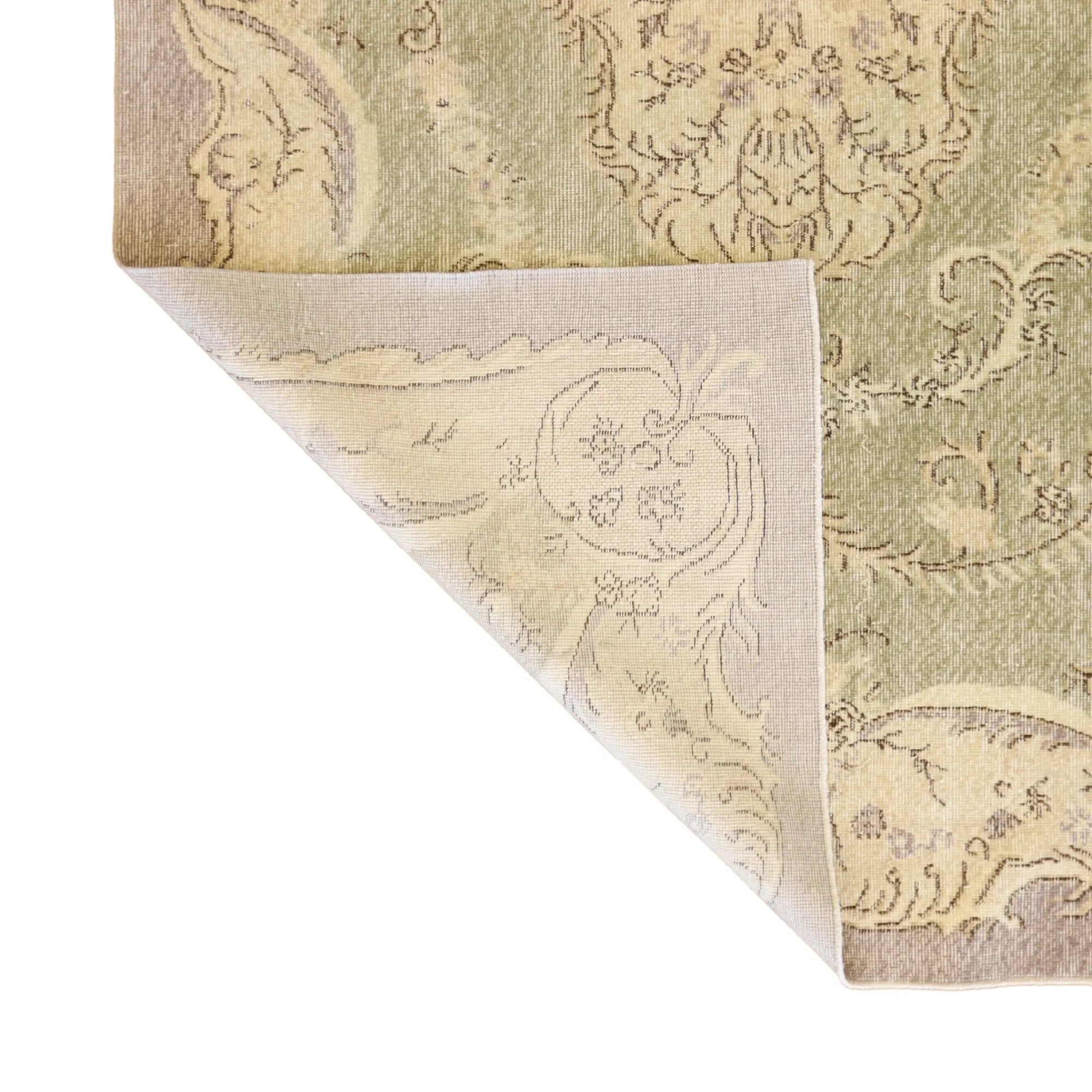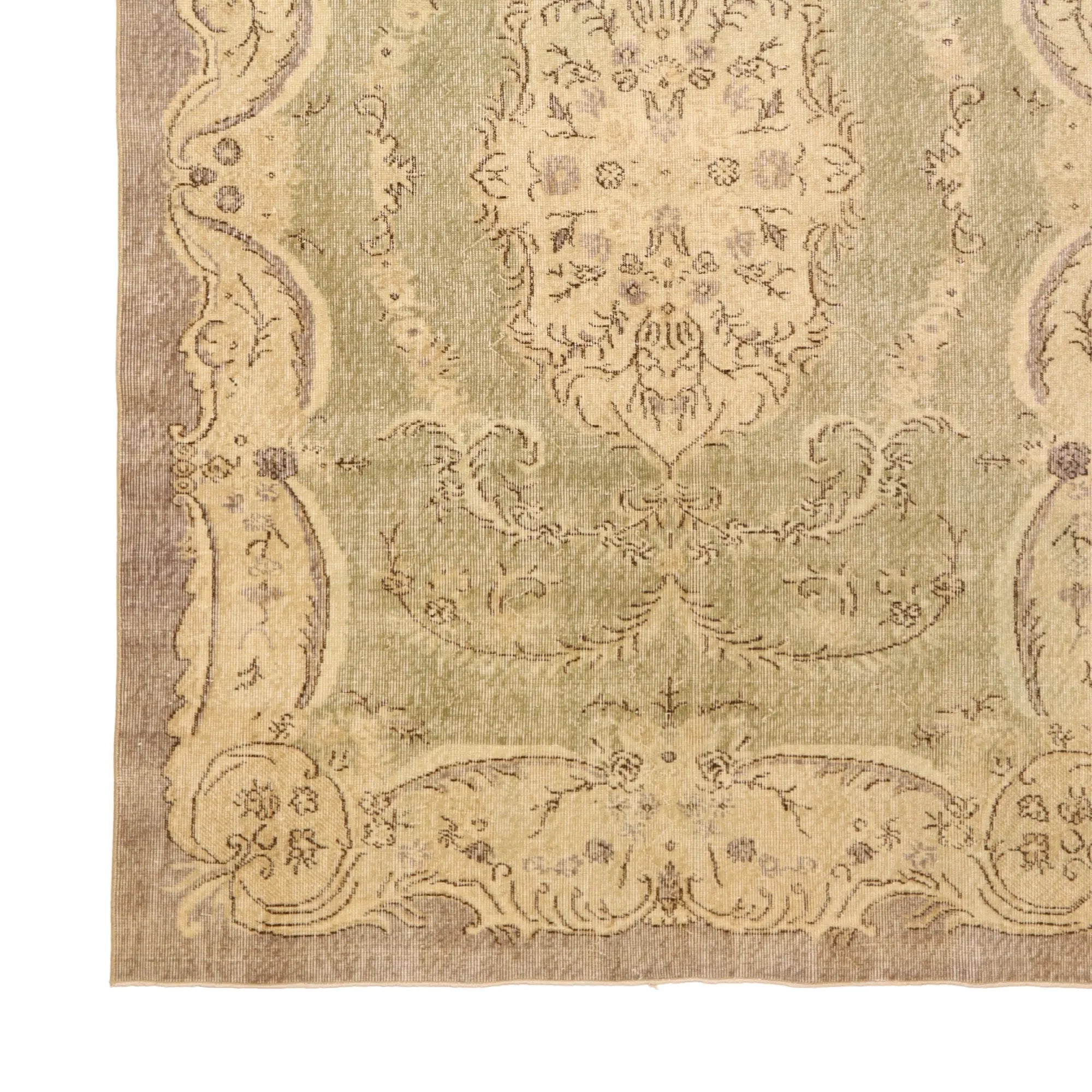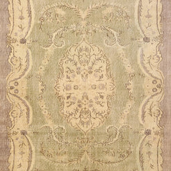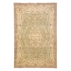 Enhance Your Space with Classic FLORAL Beauty. This beautiful SPARTA rug, crafted in a classic FLORAL style, brings a warm, welcoming feel to your home. The rich GREEN background, combined with its elegant TAN border, creates a bold yet timeless look. The soft colors and intricate design make this rug perfect for adding character and style to your living room, dining area, or any space that needs a fresh update. This handmade TURKISH rug is not only a stunning decorative piece but also a valuable investment in quality craftsmanship. Measuring 5' 10" x 8' 10", its durable construction ensures it will last for years, making it a timeless addition to your decor.