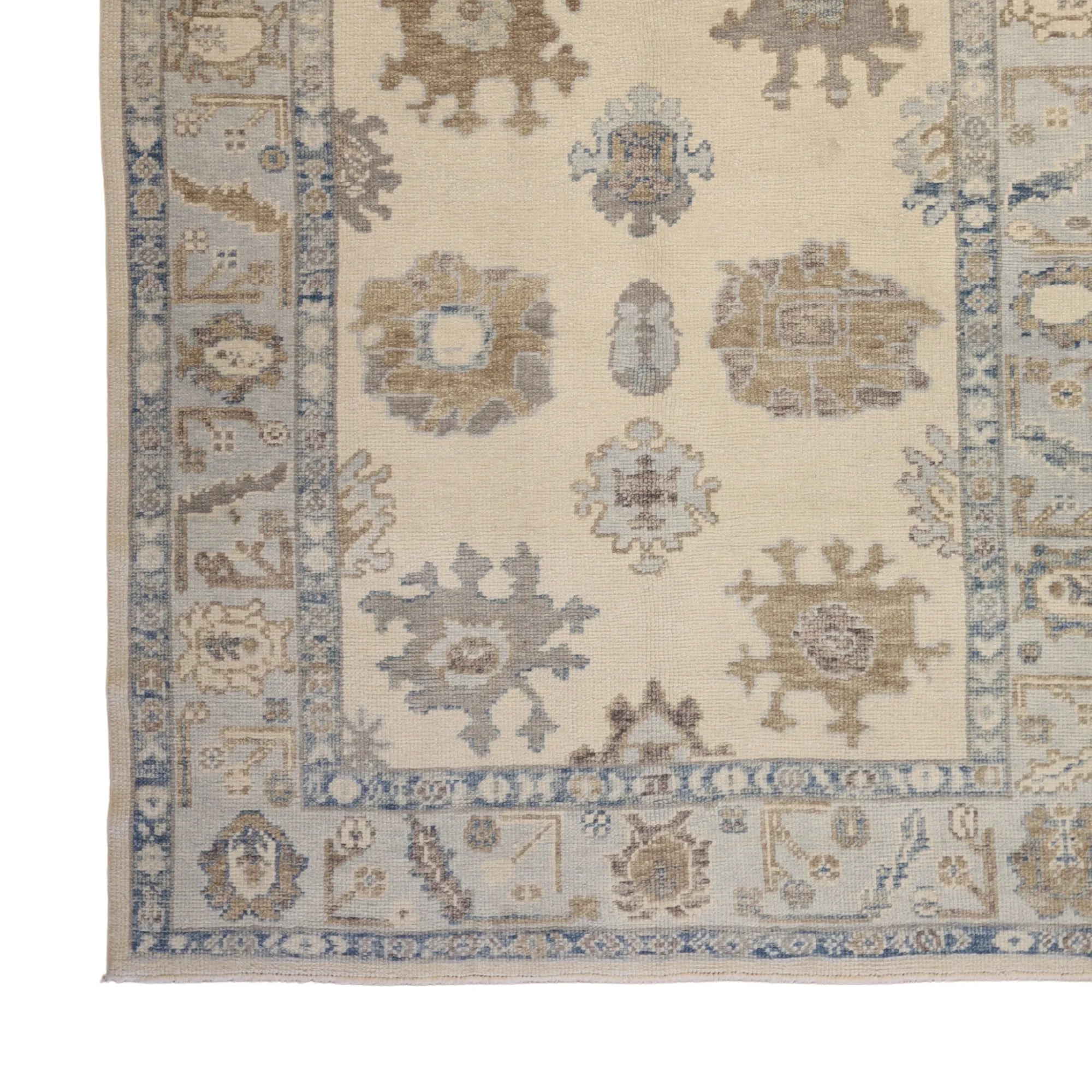 Add a Bold Touch with GEOMETRIC Style. This stunning OUSHAK rug, crafted in a striking geometric style, brings a modern and bold look to your home. The clean, sharp lines and symmetrical patterns on the BEIGE base create a dynamic visual effect, making this rug a perfect statement piece. The contrasting BLUE border adds a touch of sophistication, enhancing the overall design. Whether placed in your living room, office, or any open space, the geometric pattern brings structure and energy to the decor. This handmade TURKISH, rug is a long-lasting investment in craftsmanship and style. Measuring 5' 2" x 6' 4", it not only elevates your space but is built to stand the test of time.