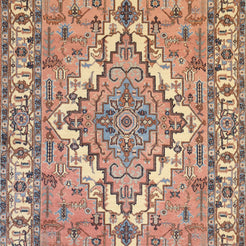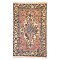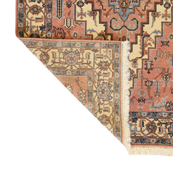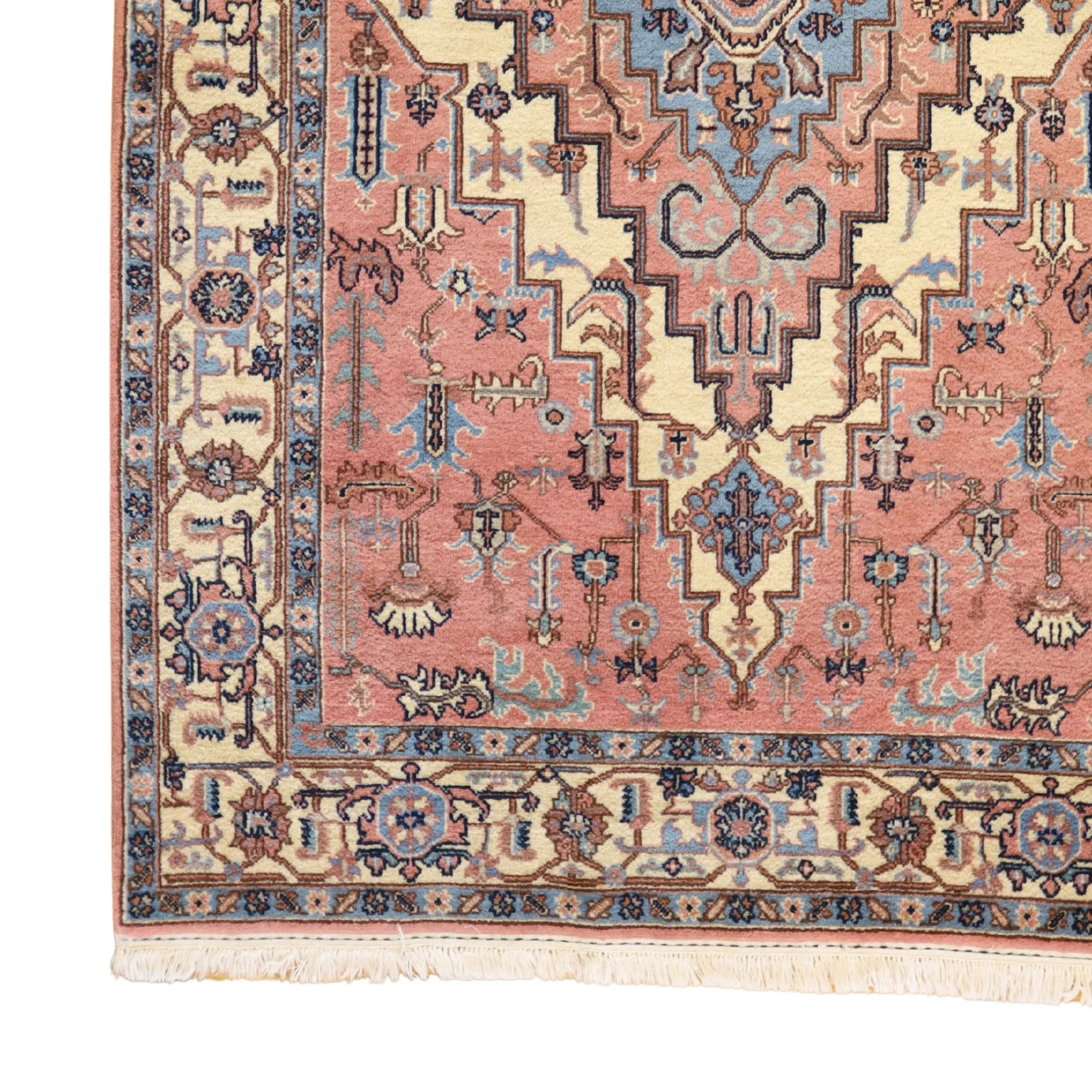 Add a Bold Touch with GEOMETRIC Style. This stunning HERIZ rug, crafted in a striking geometric style, brings a modern and bold look to your home. The clean, sharp lines and symmetrical patterns on the ROSE base create a dynamic visual effect, making this rug a perfect statement piece. The contrasting BEIGE border adds a touch of sophistication, enhancing the overall design. Whether placed in your living room, office, or any open space, the geometric pattern brings structure and energy to the decor. This handmade ROMANIAN, rug is a long-lasting investment in craftsmanship and style. Measuring 5' 8" x 8' 10", it not only elevates your space but is built to stand the test of time.