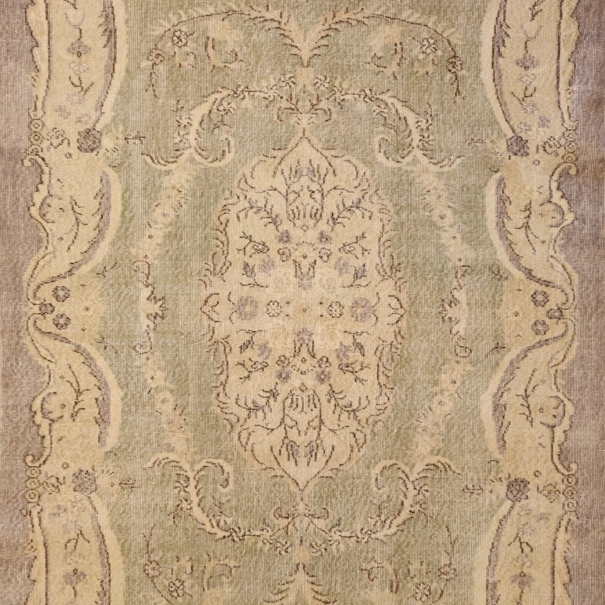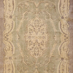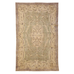 Add a Bold Touch with GEOMETRIC Style. This stunning OUSHAK rug, crafted in a striking geometric style, brings a modern and bold look to your home. The clean, sharp lines and symmetrical patterns on the GREEN base create a dynamic visual effect, making this rug a perfect statement piece. The contrasting TAN border adds a touch of sophistication, enhancing the overall design. Whether placed in your living room, office, or any open space, the geometric pattern brings structure and energy to the decor. This handmade TURKISH, rug is a long-lasting investment in craftsmanship and style. Measuring 5' 9" x 9' 4", it not only elevates your space but is built to stand the test of time.