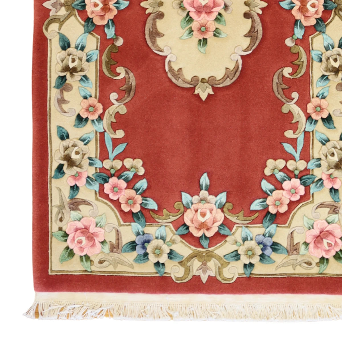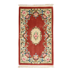 Perfectly sized for accent spaces, this handcrafted CHINESE AUBUSSON rug brings timeless EUROPEAN style into your home. Measuring approximately 3' x 3 ft, it's ideal for use in entryways, kitchens, offices, or layered in larger rooms.