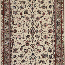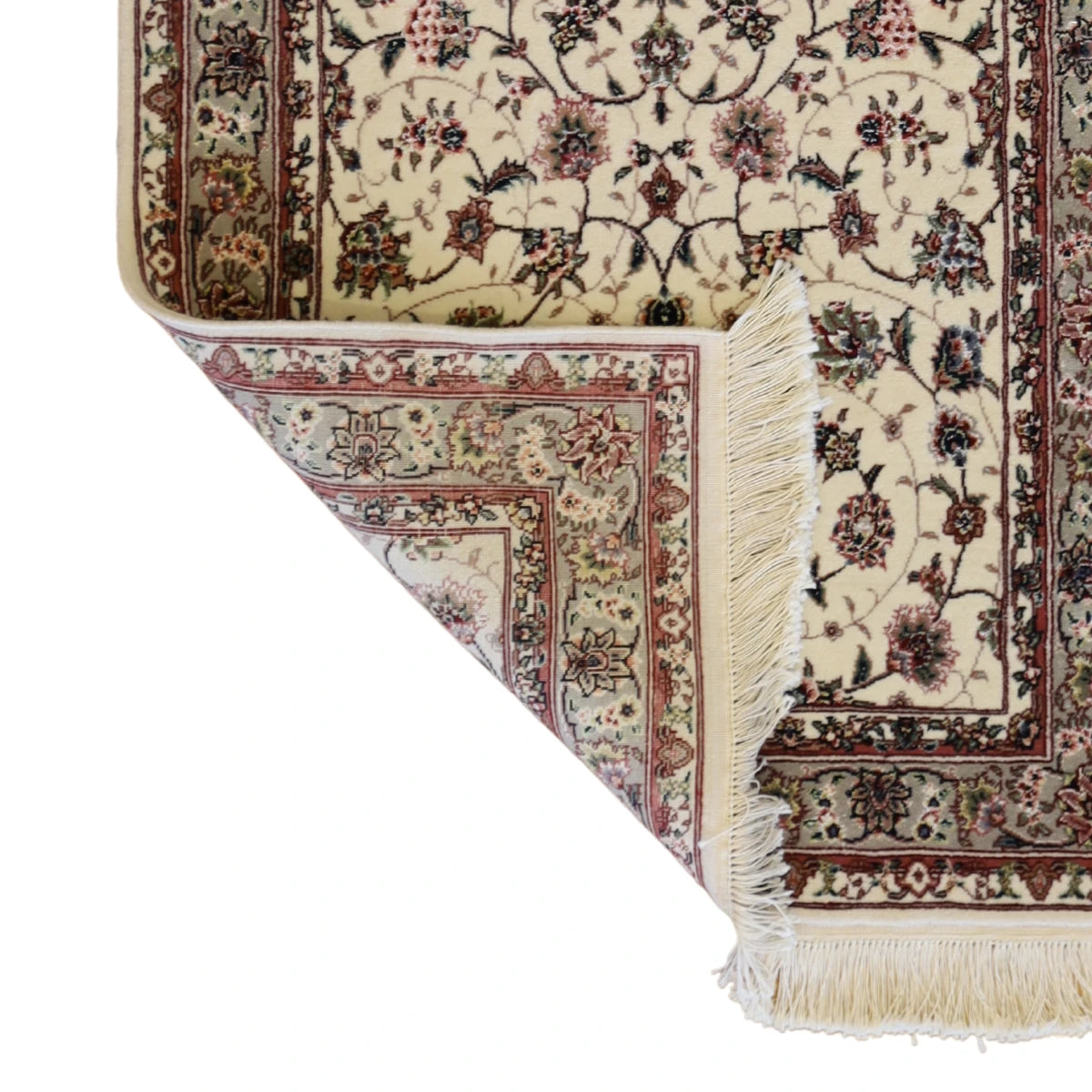 Perfectly sized for accent spaces, this handcrafted CHINESE KASHAN rug brings timeless FLORAL style into your home. Measuring approximately 3' x 3 ft, it's ideal for use in entryways, kitchens, offices, or layered in larger rooms.