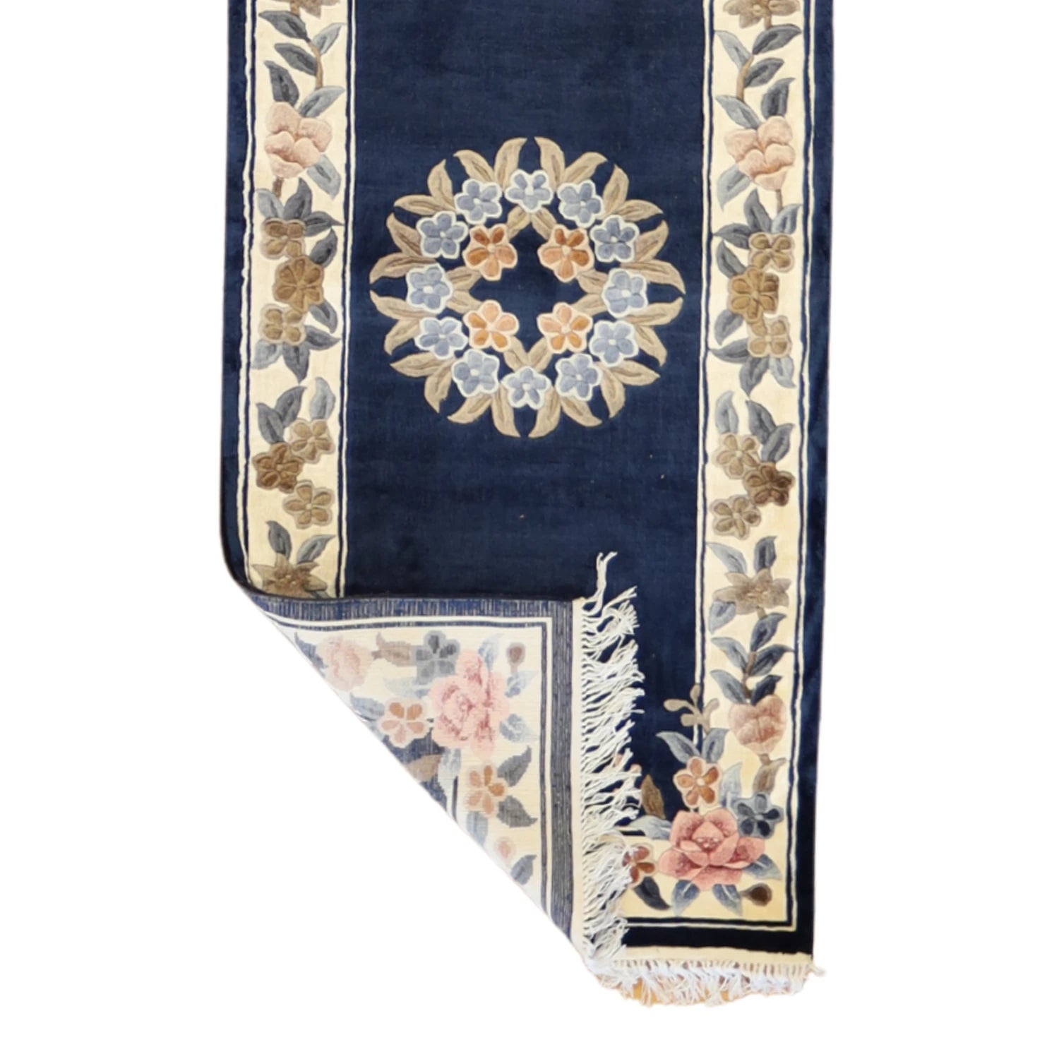 Bring style and flow to your space with this handcrafted CHINESE EUROPEAN runner rug, designed in a classic FLORAL style. Measuring approximately 2' x 2 ft, it's the perfect fit for hallways, entryways, kitchens, or alongside a bed.