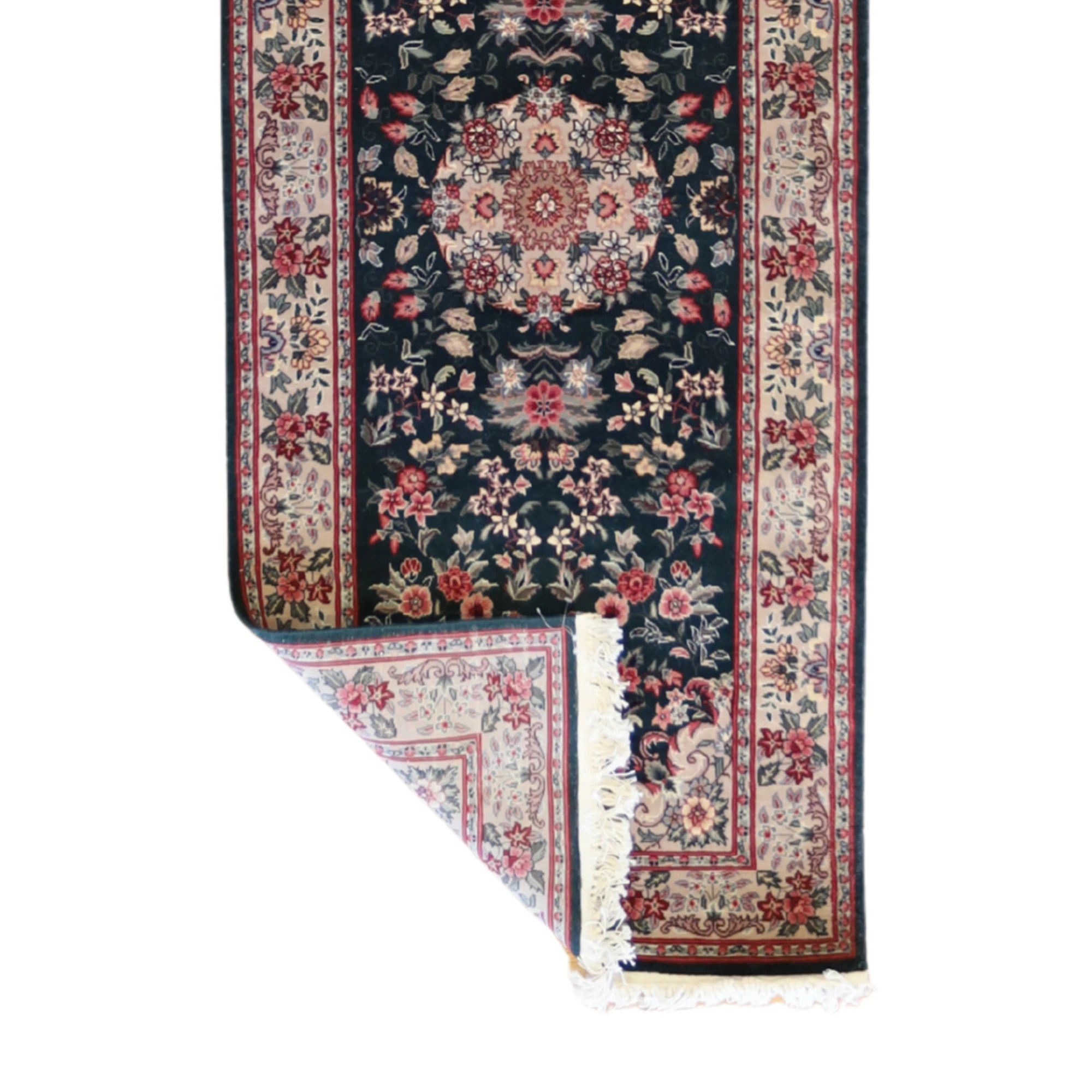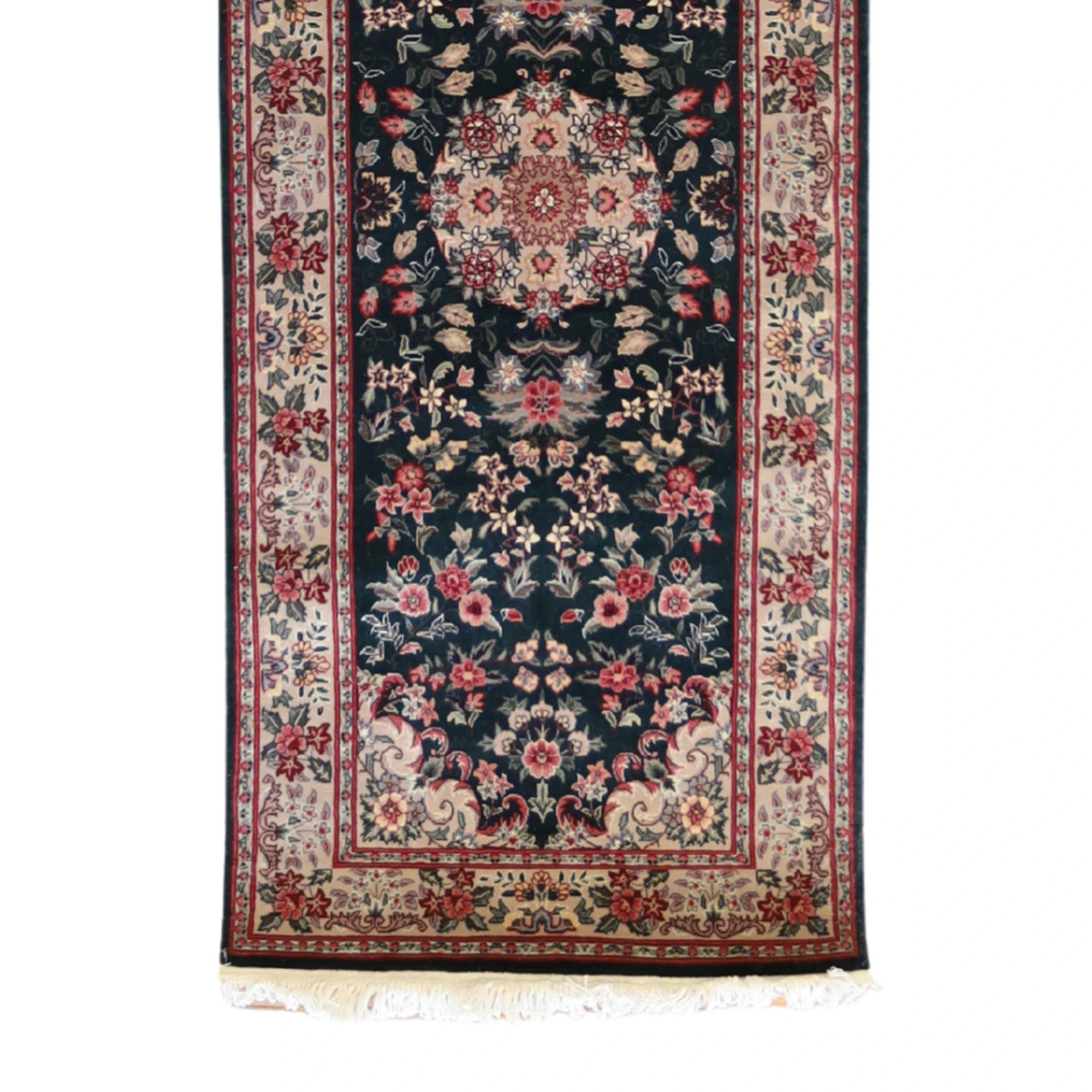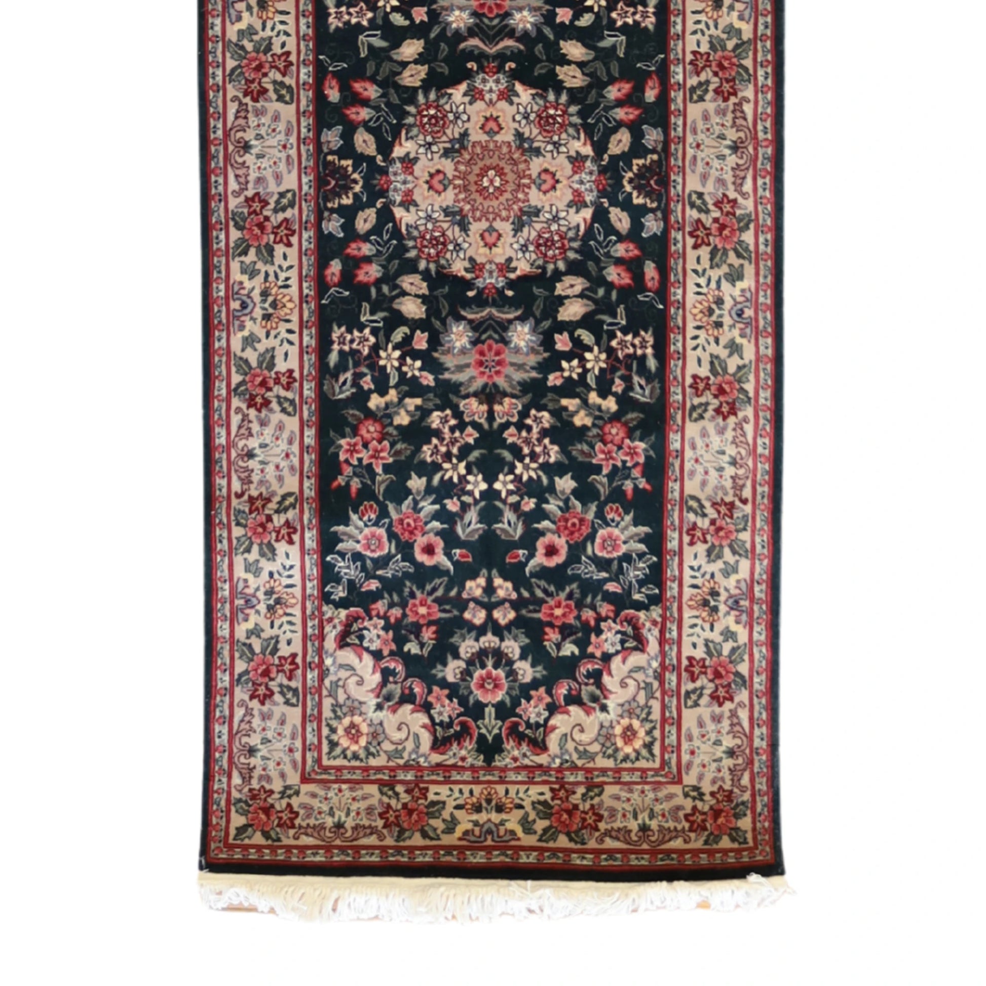Bring style and flow to your space with this handcrafted CHINESE KERMAN runner rug, designed in a classic FLORAL style. Measuring approximately 2' x 2 ft, it's the perfect fit for hallways, entryways, kitchens, or alongside a bed.