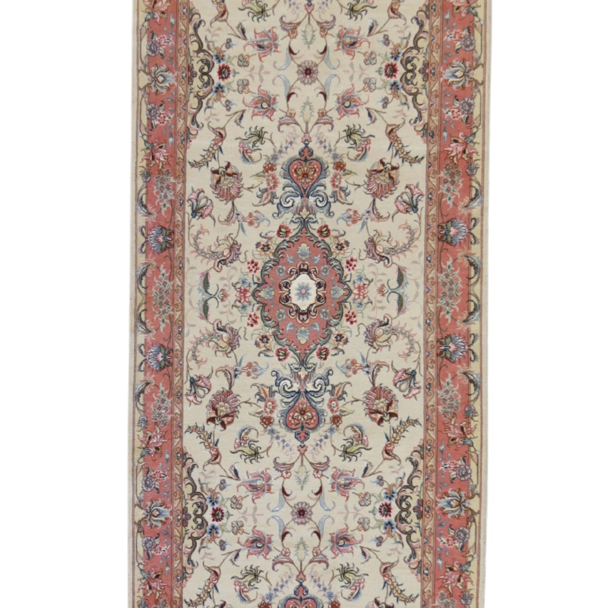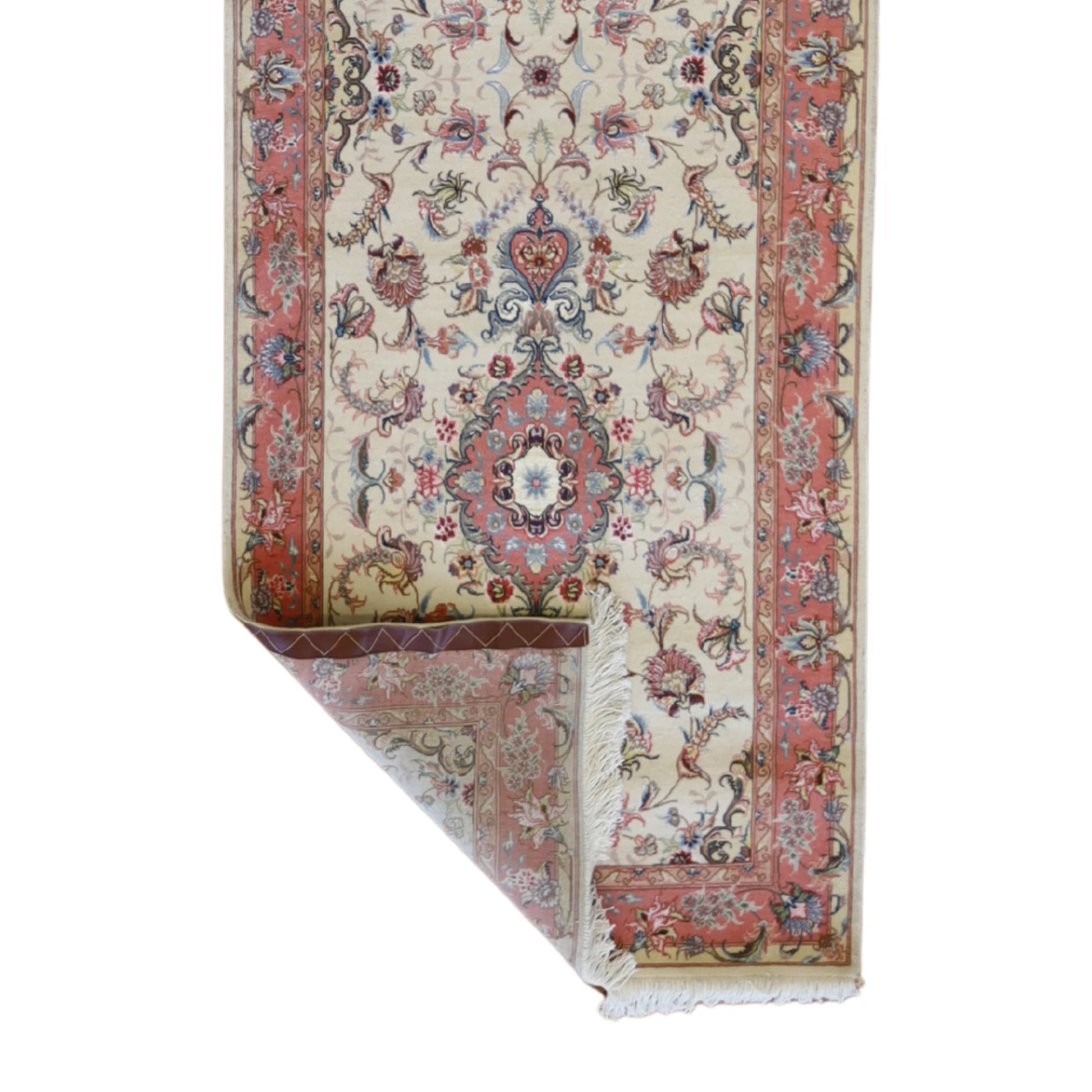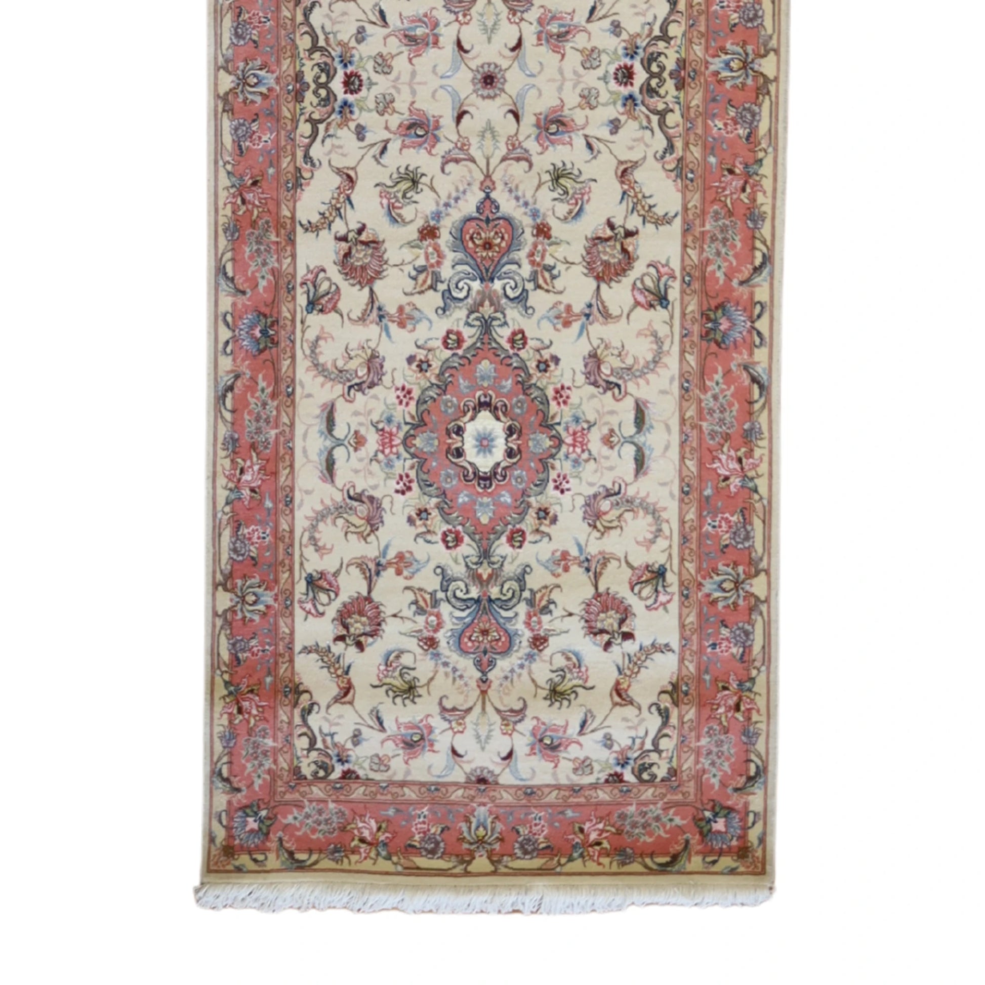 Bring style and flow to your space with this handcrafted PERSIAN TABRIZ runner rug, designed in a classic FLORAL style. Measuring approximately 2' x 2 ft, it's the perfect fit for hallways, entryways, kitchens, or alongside a bed.