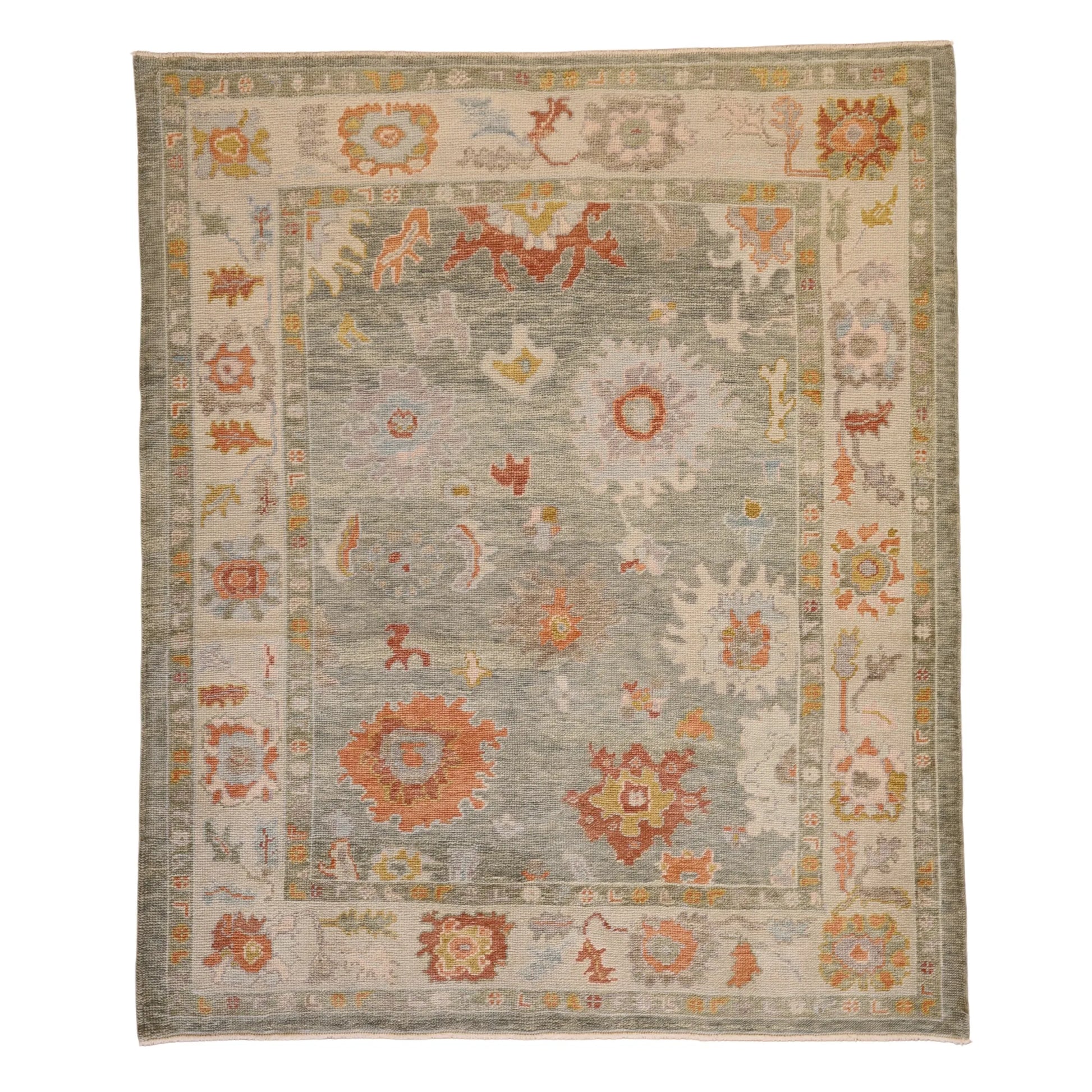 Add a Bold Touch with GEOMETRIC Style. This stunning OUSHAK rug, crafted in a striking geometric style, brings a modern and bold look to your home. The clean, sharp lines and symmetrical patterns on the GREEN base create a dynamic visual effect, making this rug a perfect statement piece. The contrasting BEIGE border adds a touch of sophistication, enhancing the overall design. Whether placed in your living room, office, or any open space, the geometric pattern brings structure and energy to the decor. This handmade TURKISH, rug is a long-lasting investment in craftsmanship and style. Measuring 6' 0" x 7' 2", it not only elevates your space but is built to stand the test of time.