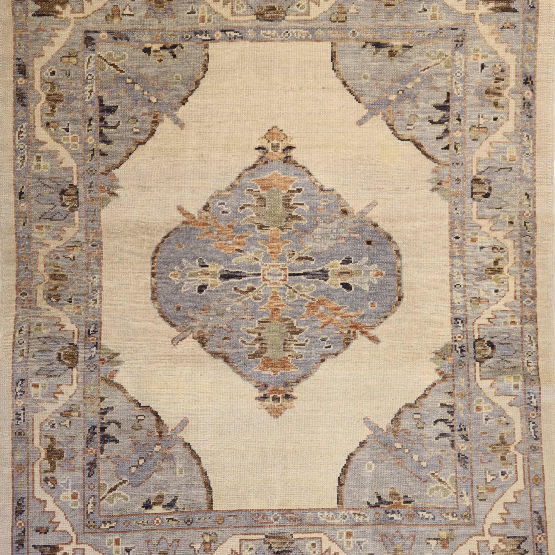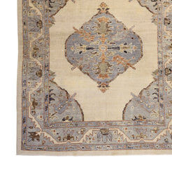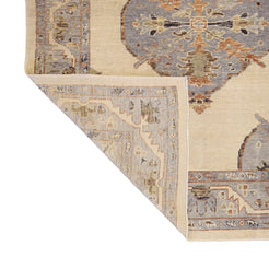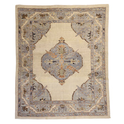 Add a Bold Touch with GEOMETRIC Style. This stunning OUSHAK rug, crafted in a striking geometric style, brings a modern and bold look to your home. The clean, sharp lines and symmetrical patterns on the BEIGE base create a dynamic visual effect, making this rug a perfect statement piece. The contrasting BLUE border adds a touch of sophistication, enhancing the overall design. Whether placed in your living room, office, or any open space, the geometric pattern brings structure and energy to the decor. This handmade TURKISH, rug is a long-lasting investment in craftsmanship and style. Measuring 6' 3" x 7' 8", it not only elevates your space but is built to stand the test of time.