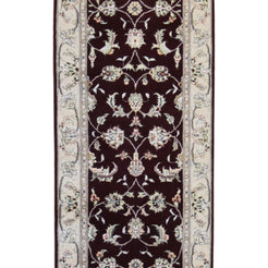 Made from high-quality SILK&WOOL, this runner is both durable and soft underfoot. The elegant BURGUNDY base color paired with a refined TAN border adds warmth and movement to your interior.