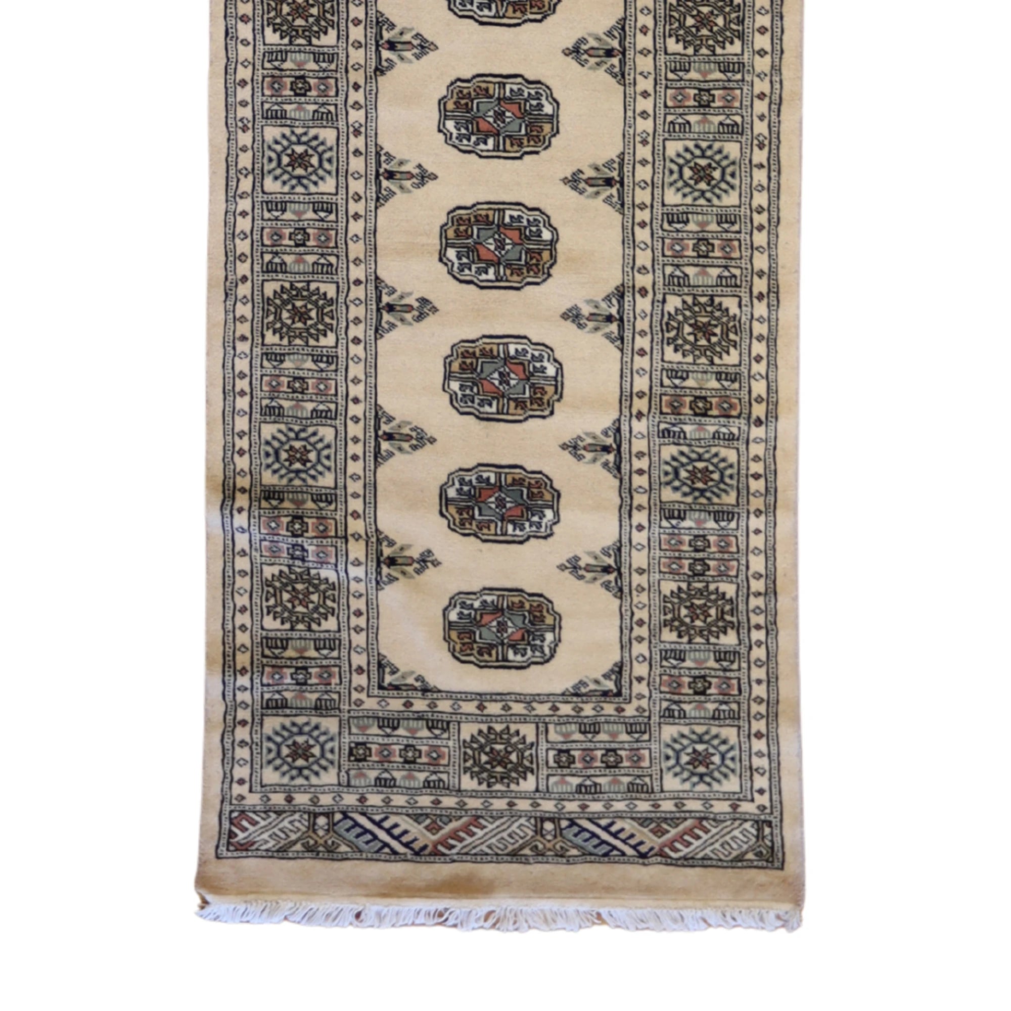 Bring style and flow to your space with this handcrafted PAKISTANI BOKARA runner rug, designed in a classic GEOMETRIC style. Measuring approximately 2' x 2 ft, it's the perfect fit for hallways, entryways, kitchens, or alongside a bed.