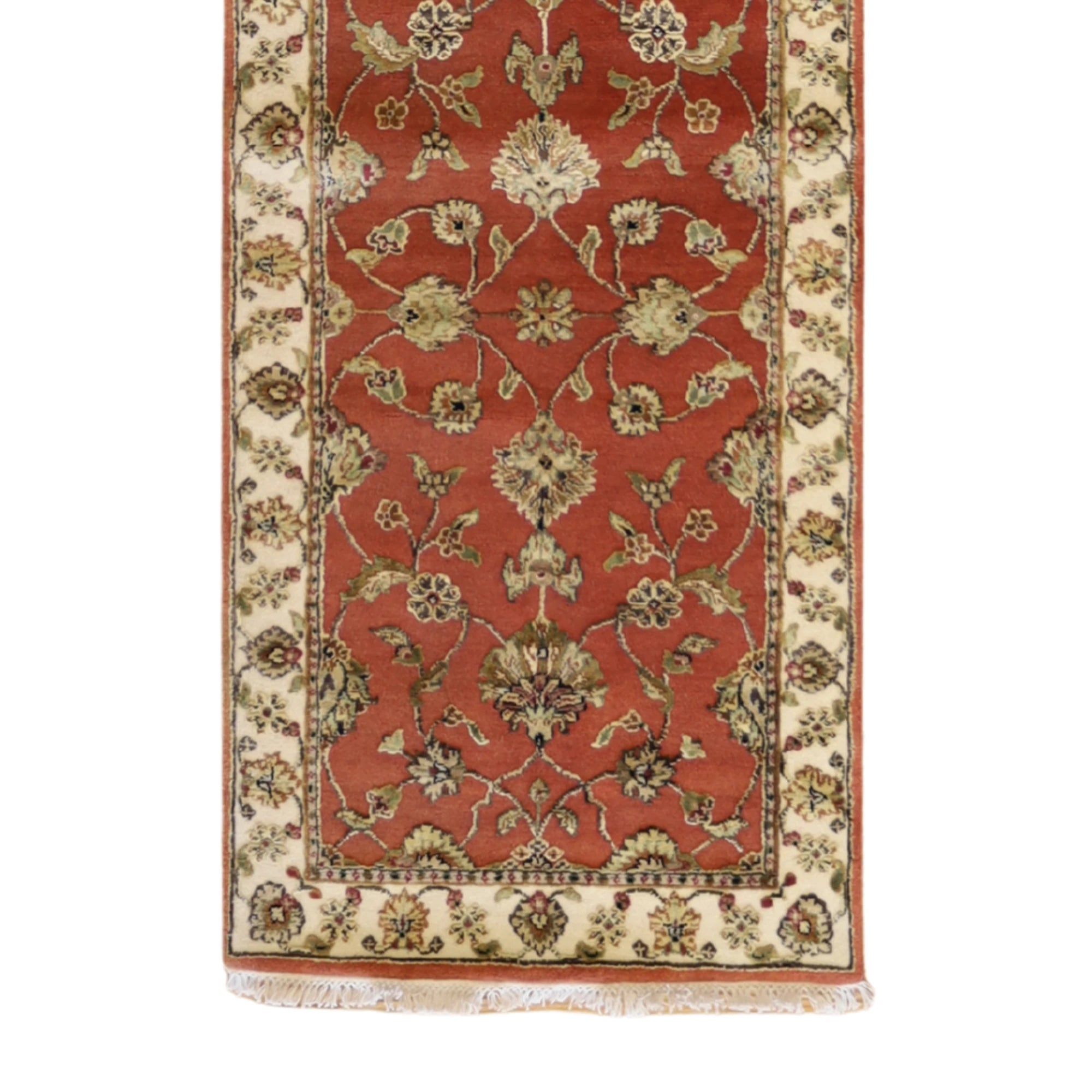 Bring style and flow to your space with this handcrafted INDIAN JAIPUR runner rug, designed in a classic FLORAL style. Measuring approximately 2' x 2 ft, it's the perfect fit for hallways, entryways, kitchens, or alongside a bed.