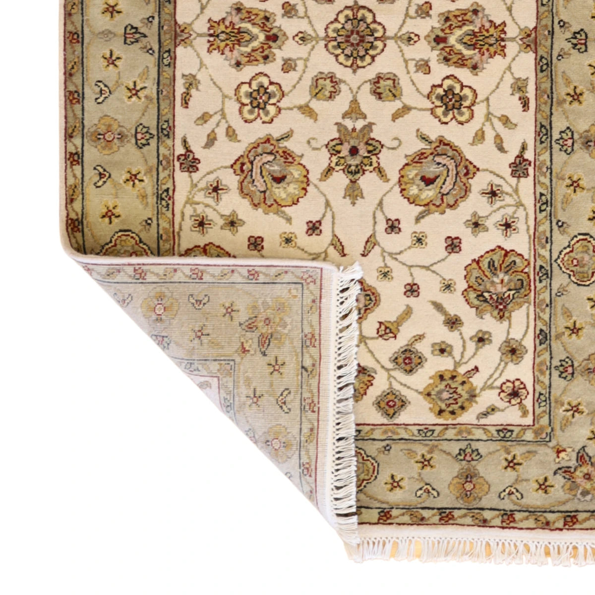 Perfectly sized for accent spaces, this handcrafted INDIAN JAIPUR rug brings timeless FLORAL style into your home. Measuring approximately 3' x 3 ft, it's ideal for use in entryways, kitchens, offices, or layered in larger rooms.